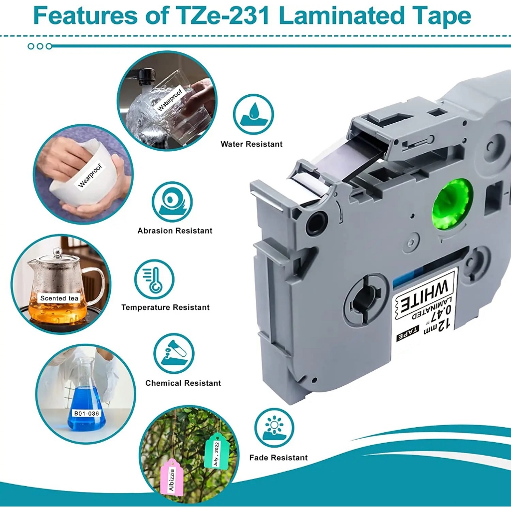 [ในสต็อก] เทปฉลาก เข้ากันได้ brother 6/9/12/18/24mm Tze231 tze221 เทปกาว เทปฉลากลามิเนต TZE-231 TZE-631 6 9 12 มม. สําหรับเครื่องทําฉลาก Brother P-Touch PTH110 เทปติดฉลาก