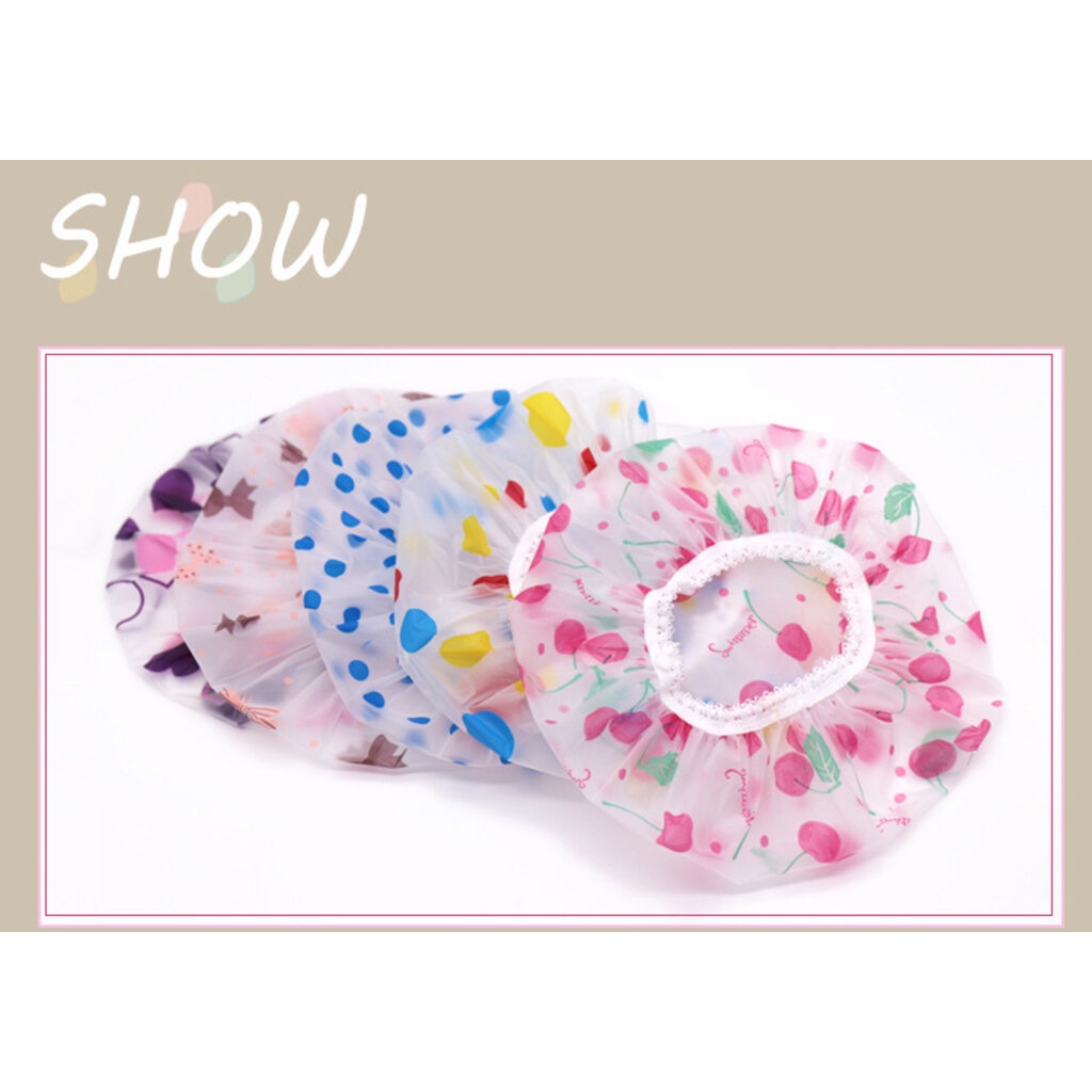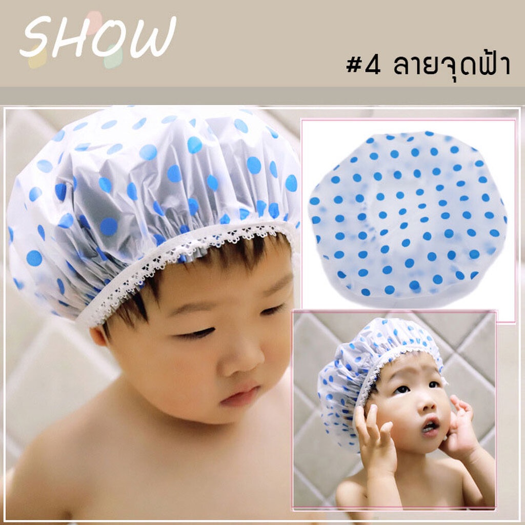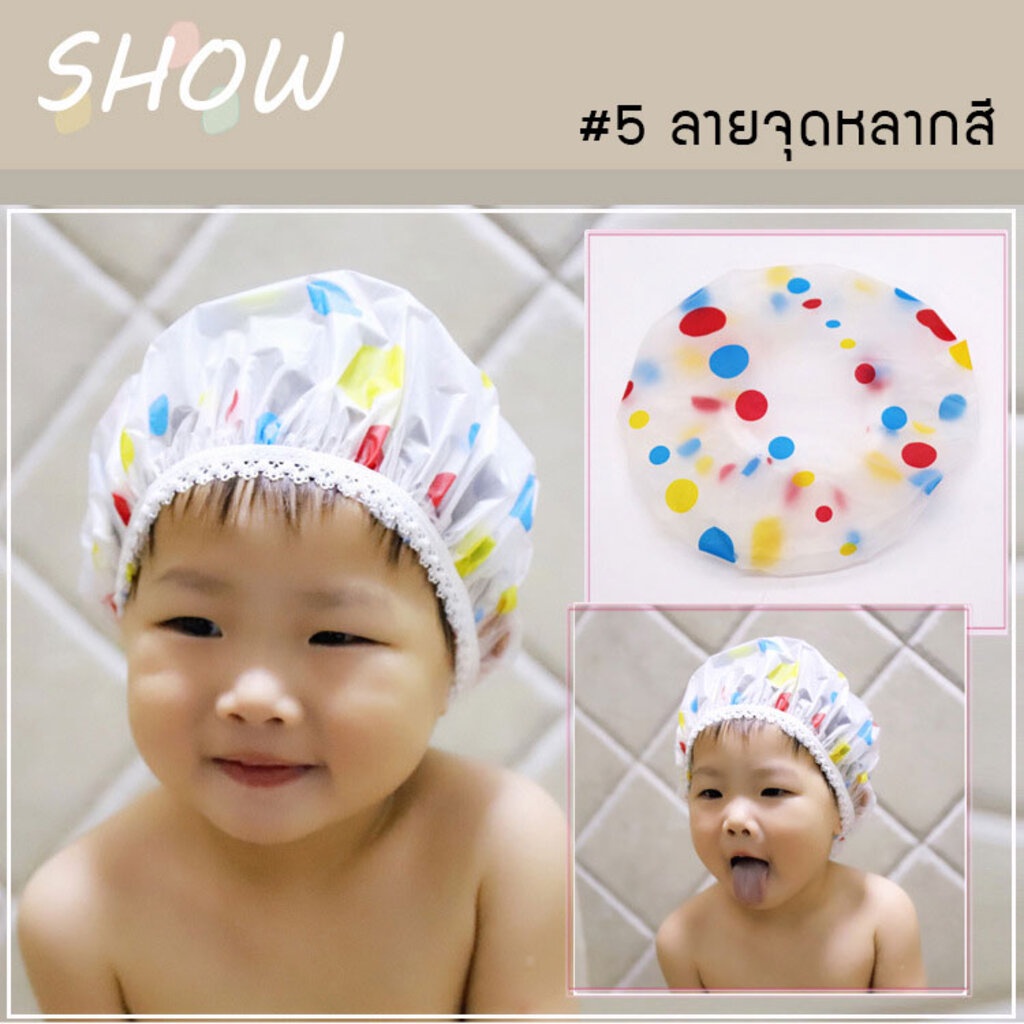 หมวกคลุมอาบน้ำเด็ก กันผมเปียก 5 ลายน่ารัก - โบว์/เชอรี่/หัวใจ/จุดฟ้า/จุดหลากสี