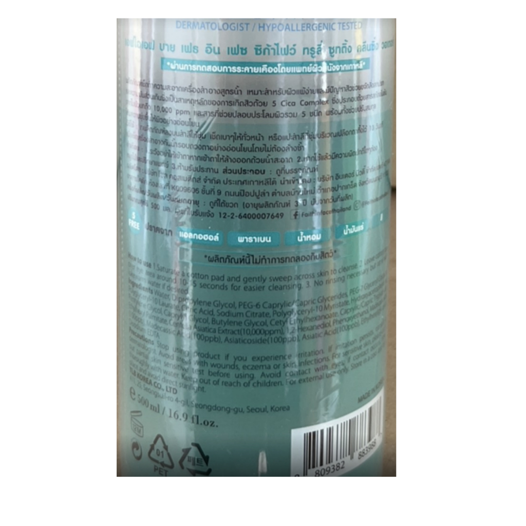FIF by Faith in Face Cica5 Truly Soothing/Truly Waterly Cleansing Water 500ml เฟธอินเฟซ คลีนซิ่งสูตรน้ำ
