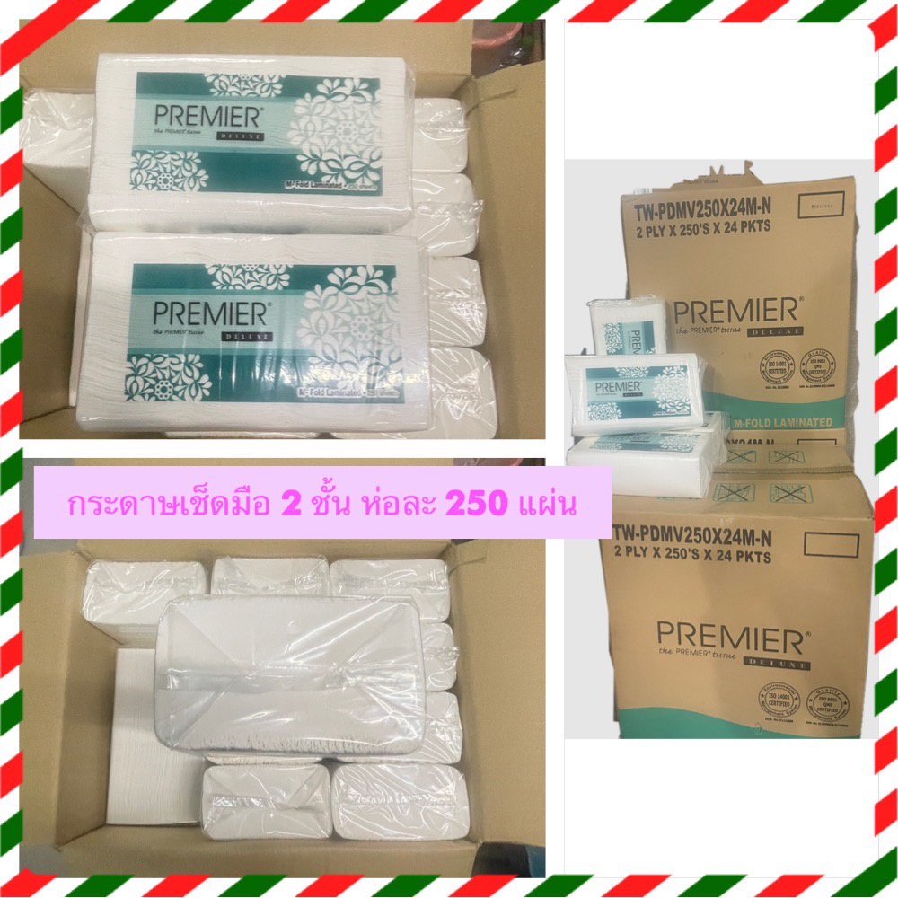 กระดาษเช็ดมือ Premier แบบ M-FOLD ชนิดแผ่น 2 ชั้น จำนวน 250 แผ่น พร้อมส่ง