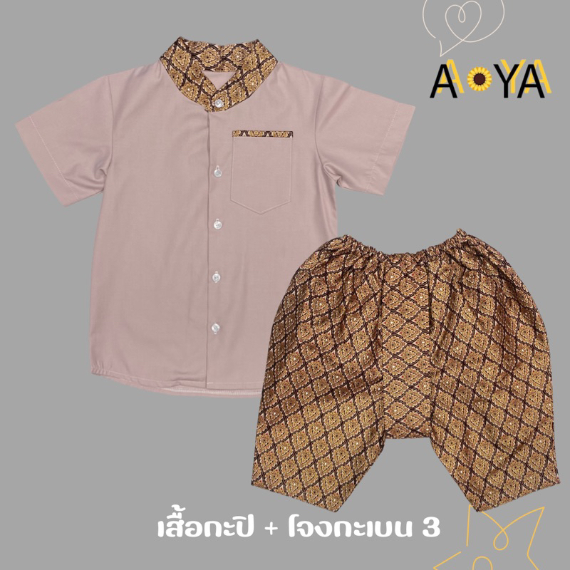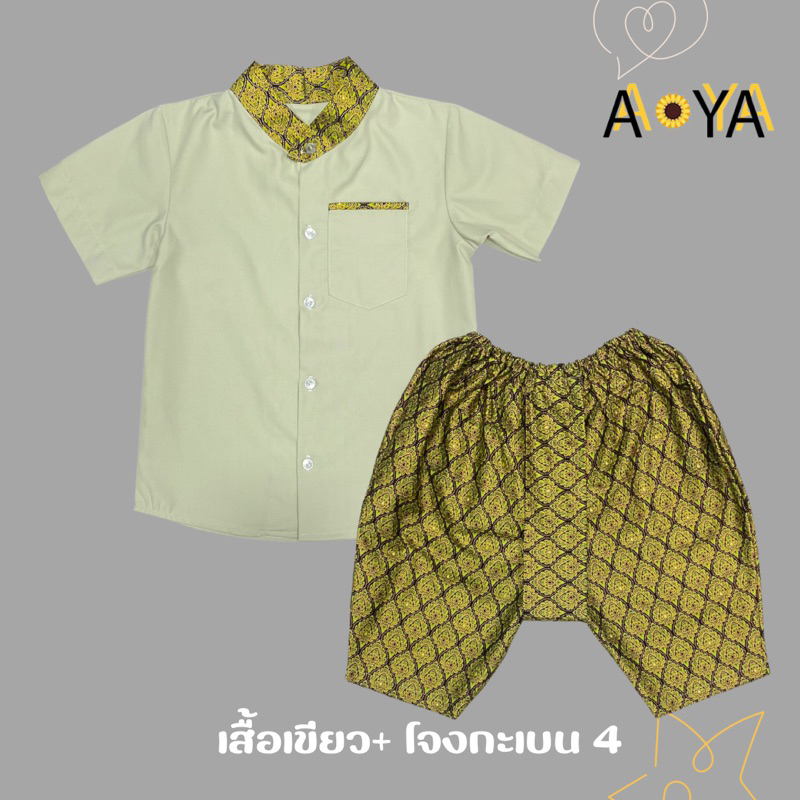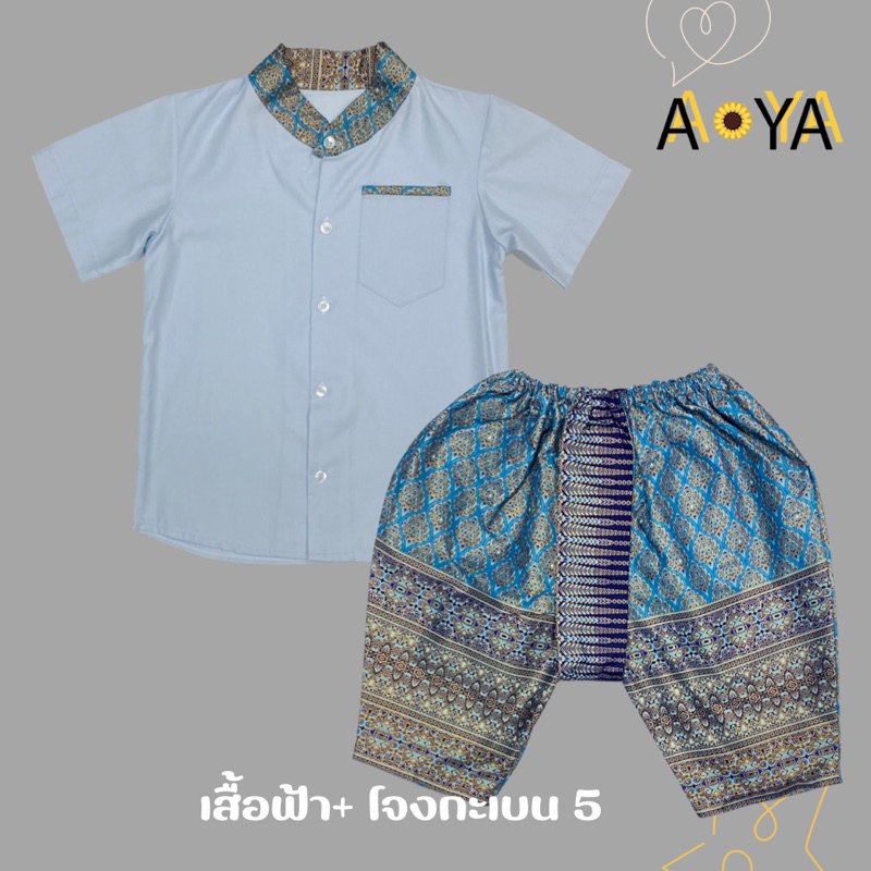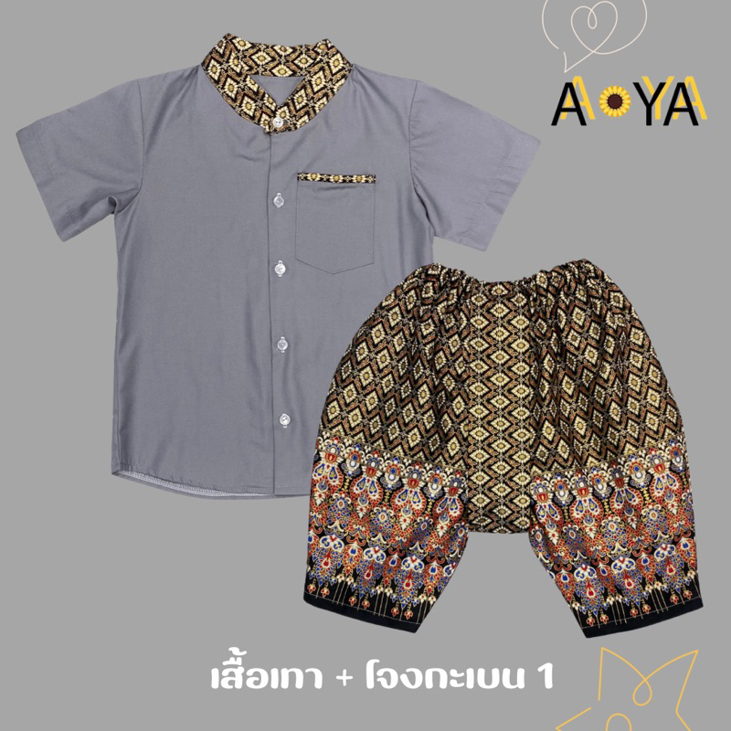 ชุดไทยเด็กชาย ชุดไทยใส่ไปโรงเรียน ชุดไทยอนุบาล โจงกระเบน (คอจีน)