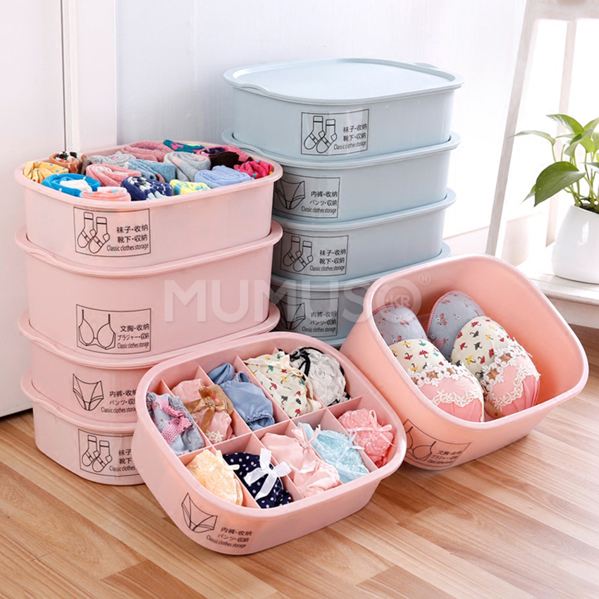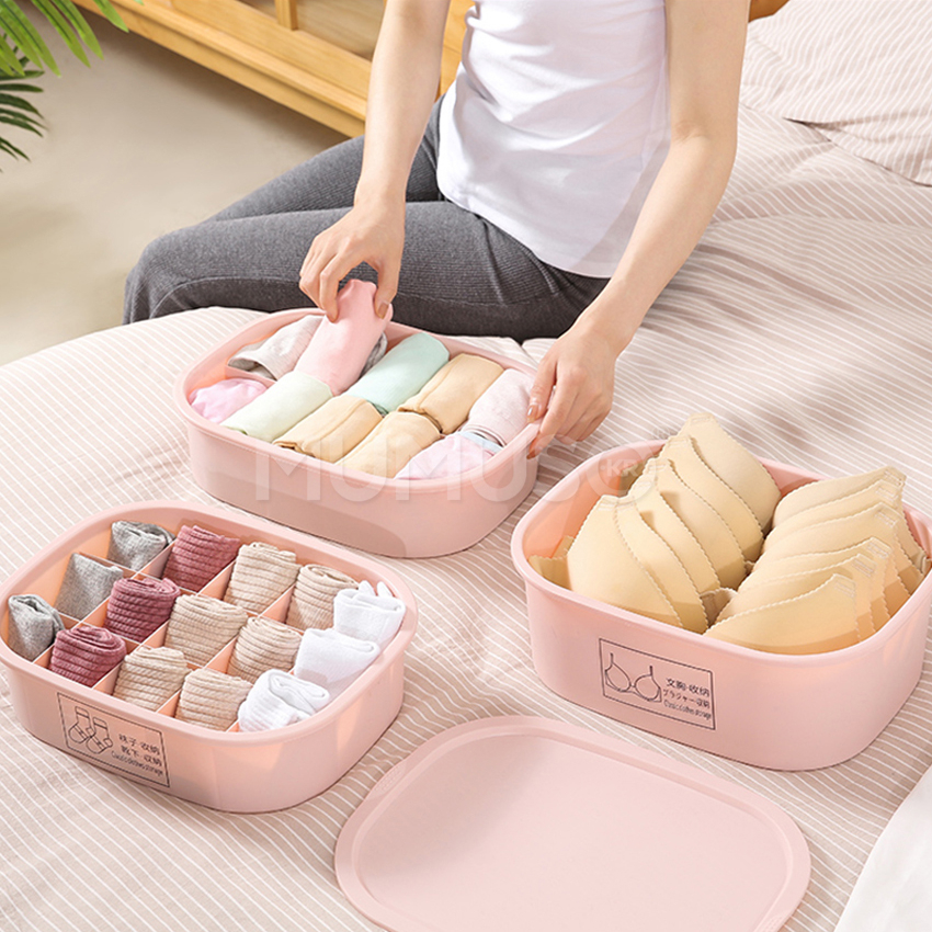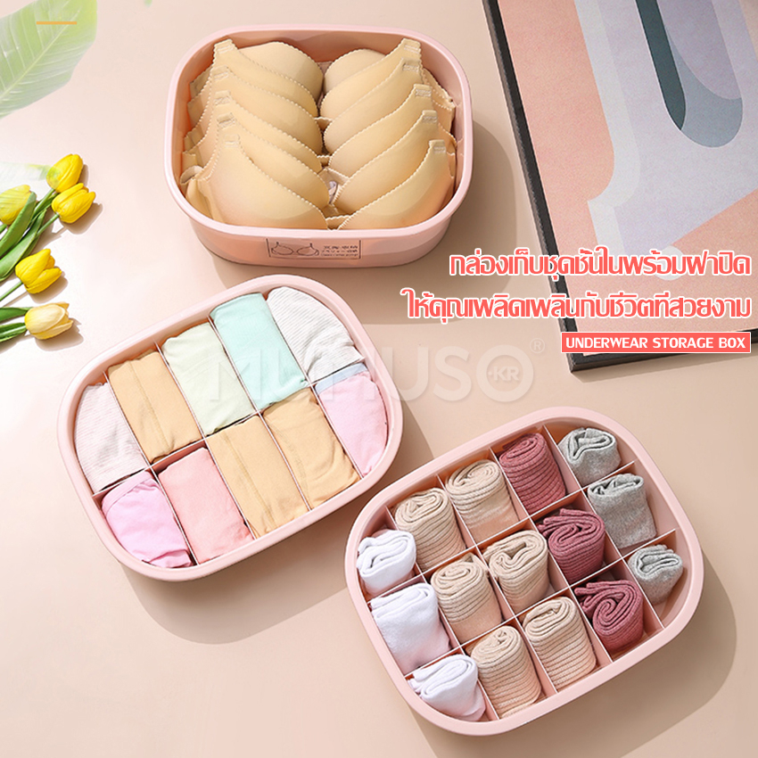 -กล่องจัดเก็บชุดชั้นใน เก็บถุงเท้า มีฝาปิด