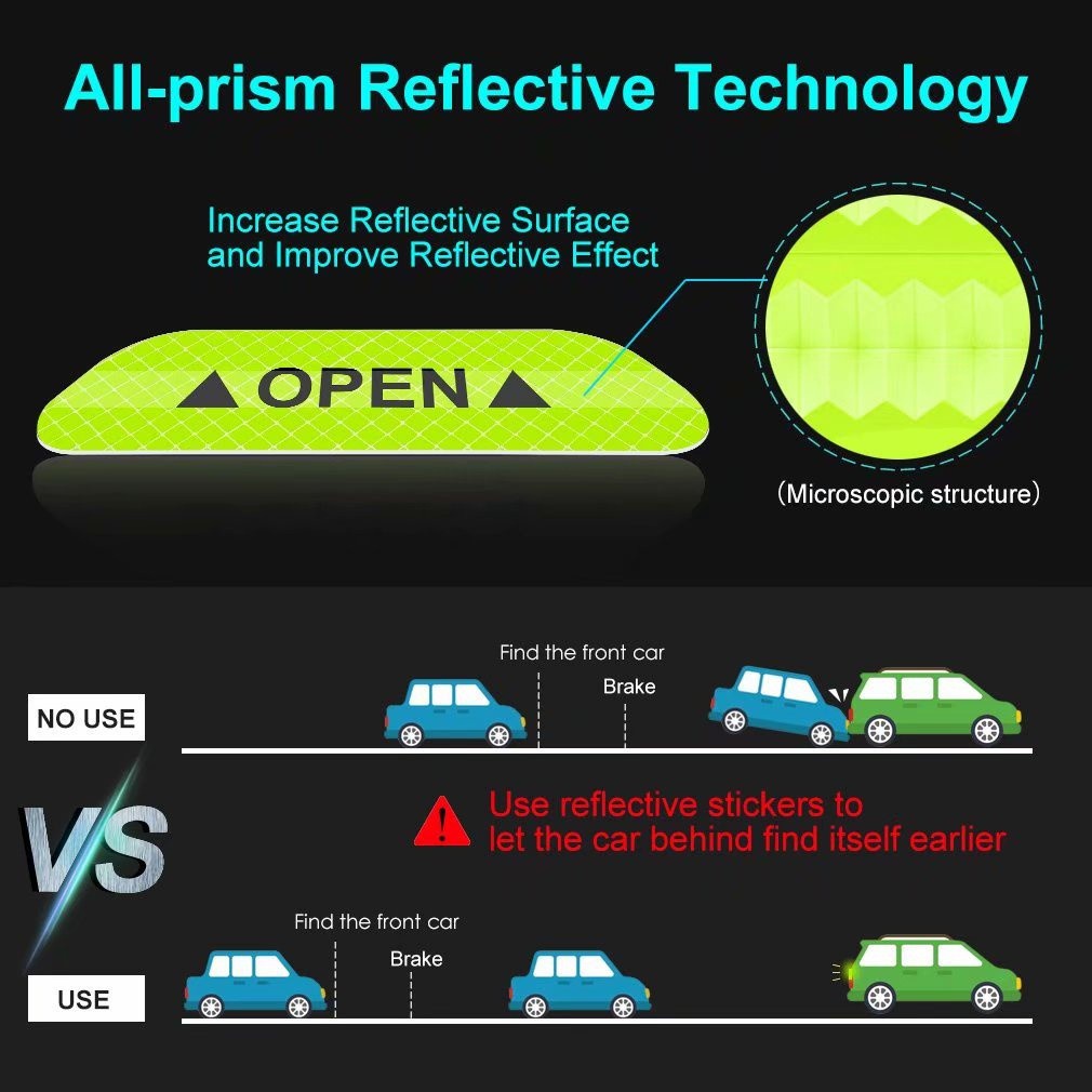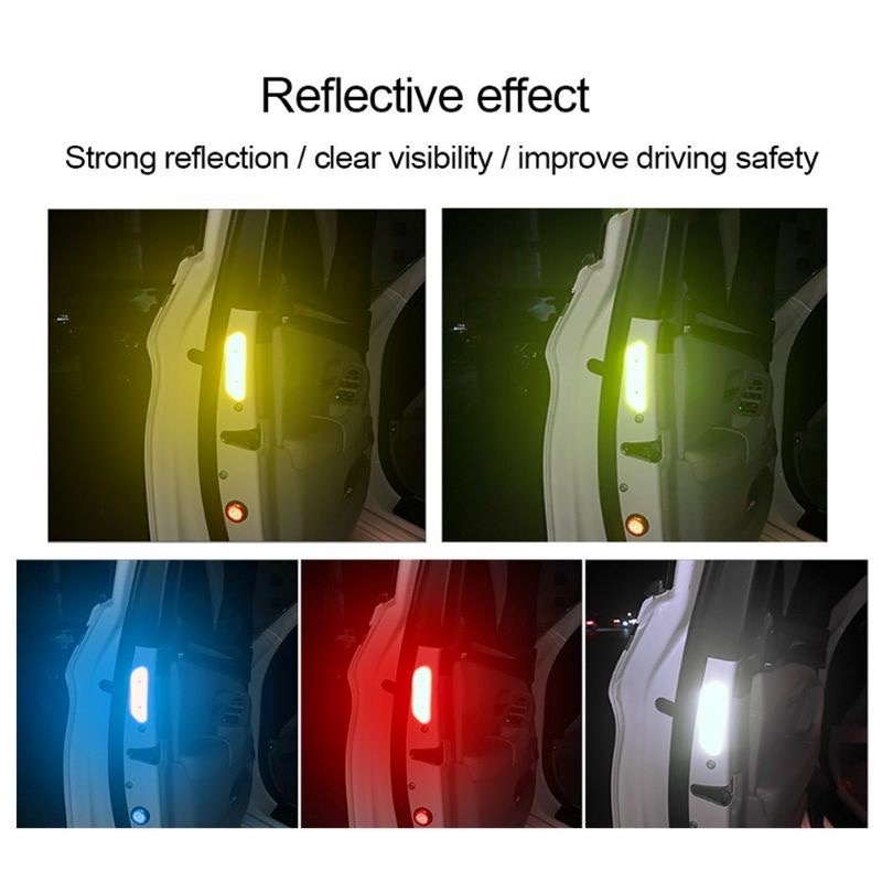 4 ชิ้น สติ๊กเกอร์สะท้อนแสงติดประตูรถยนต์ ชุด เทปสติกเกอร์เรืองเเสง สำหรับติดประตูรถยนต์ สติกเกอร์ตกแต่งรถยนต์