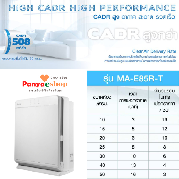 MITSUBISHI ELECTRIC เครื่องฟอกอากาศ รุ่น MA-E85R-T สำหรับพื้นที่ไม่เกิน 60 ตร.ม.