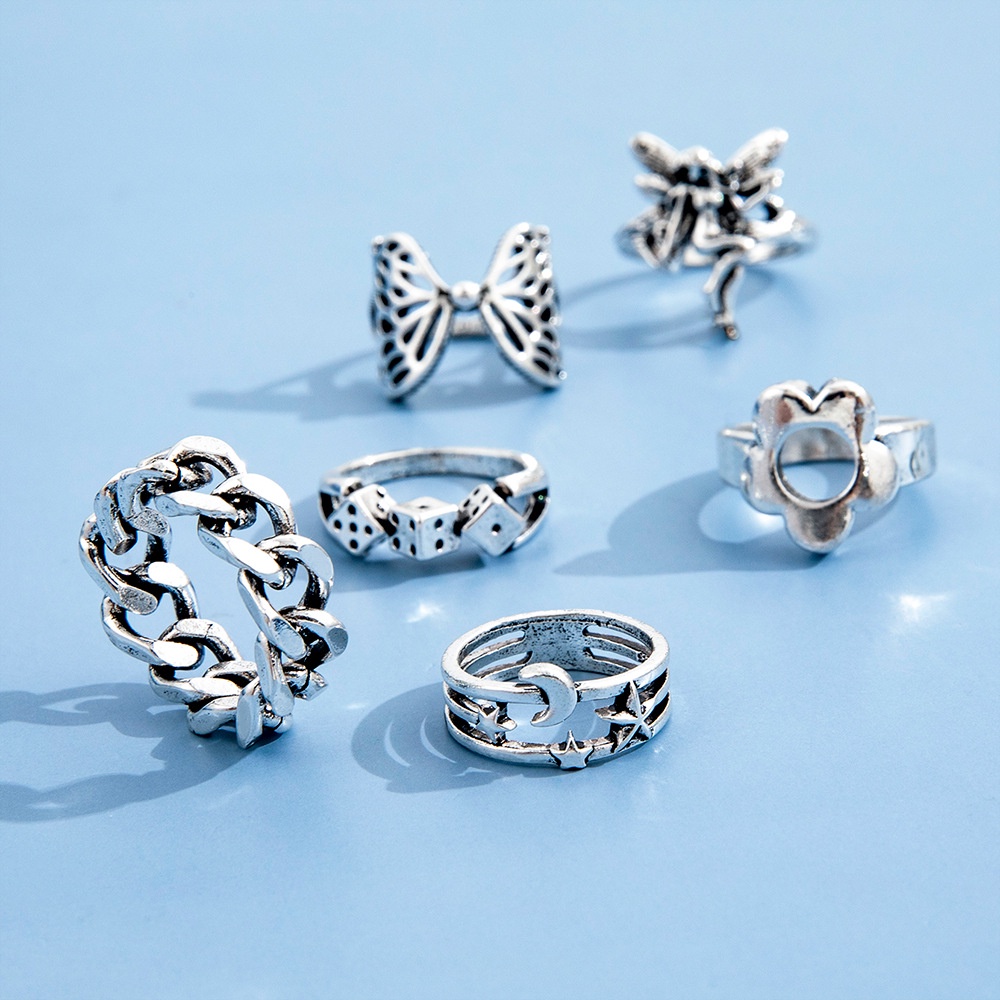 ฮิปฮอป สีเงิน วินเทจ โกธิค พังก์ โซ่ ผีเสื้อ ดอกไม้ กะโหลก แหวน สําหรับผู้หญิง / ผู้ชาย เครื่องประดับ