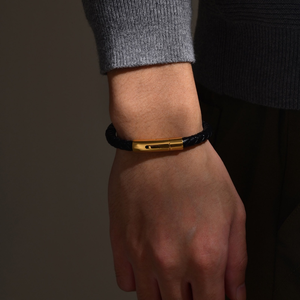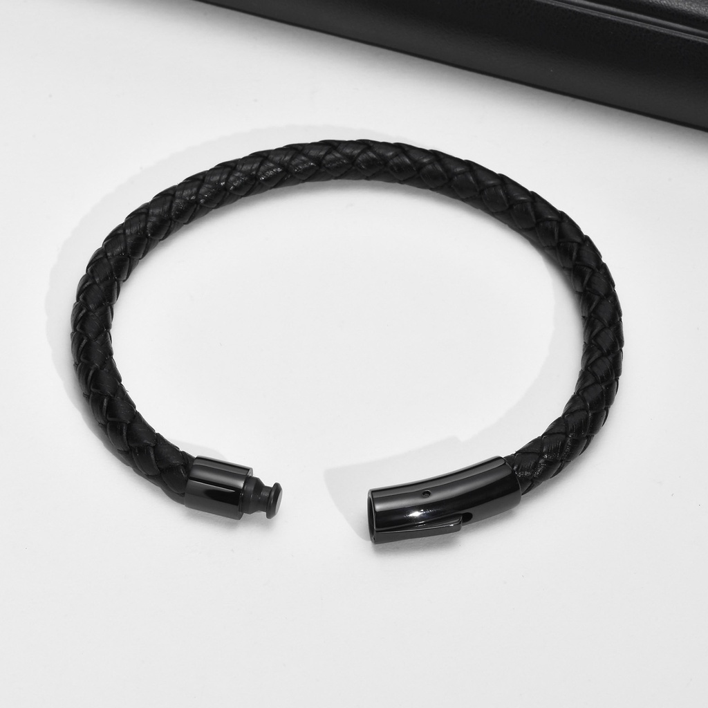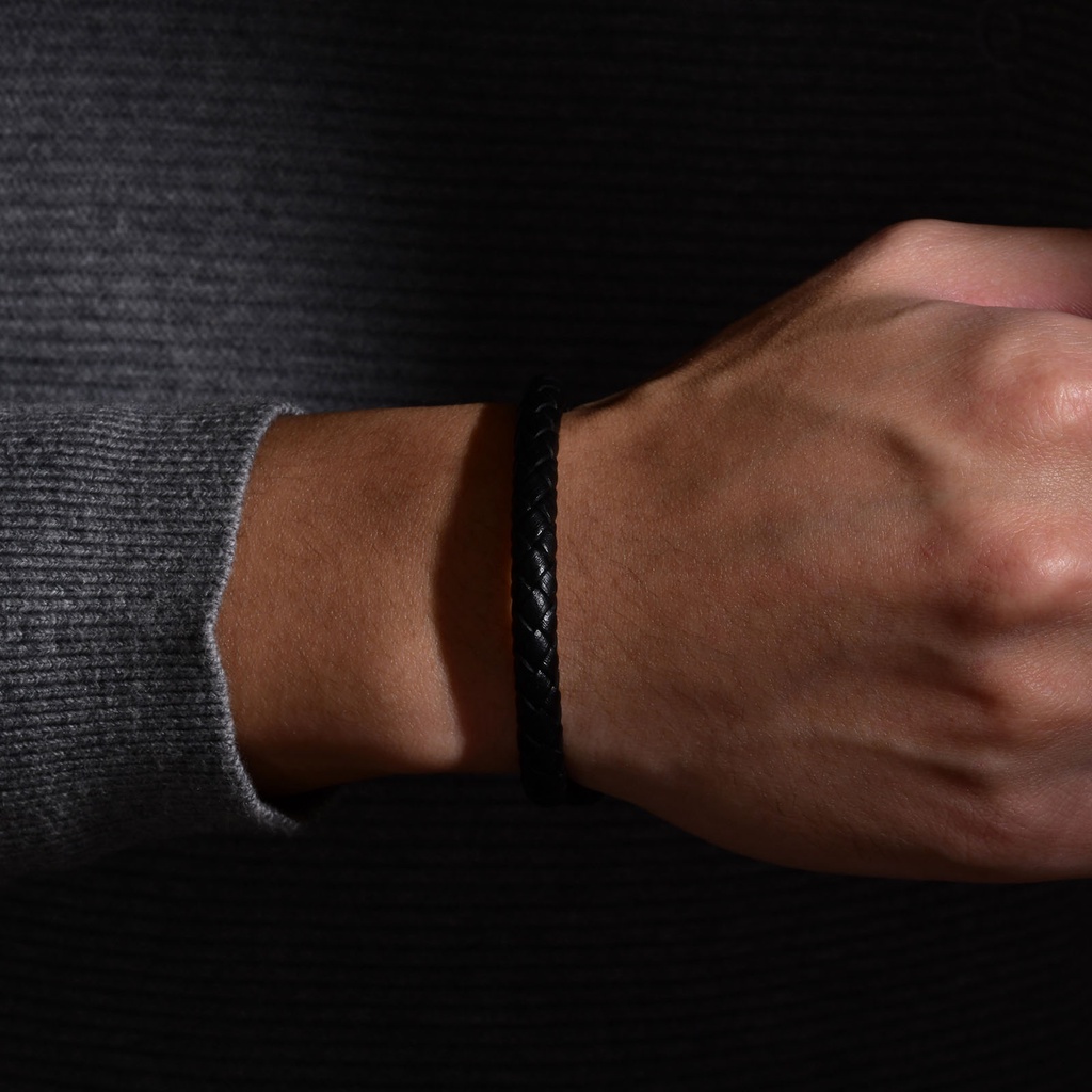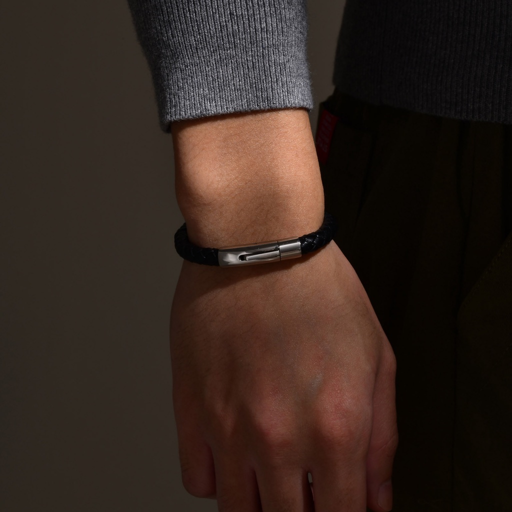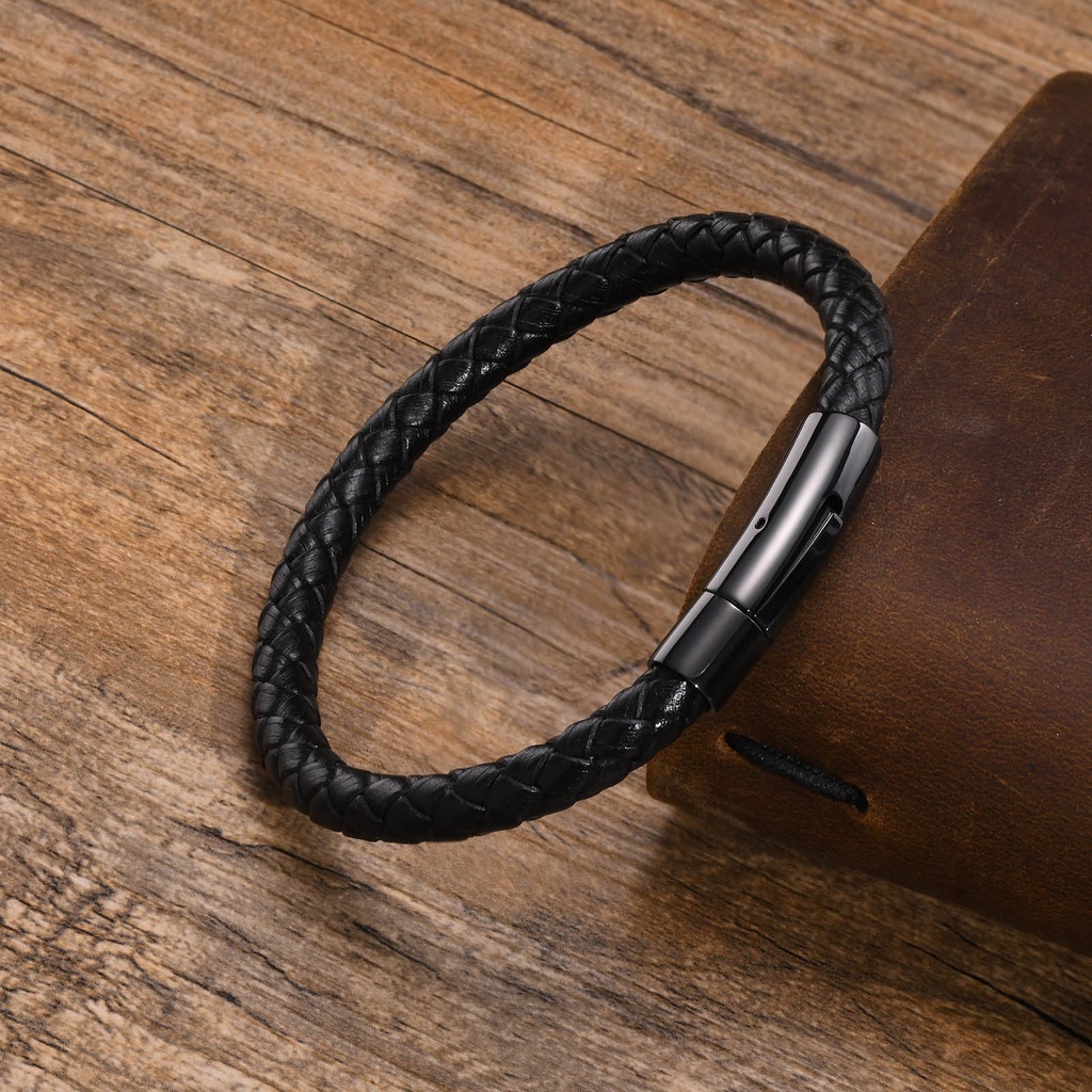 Vnox แบรนด์ลําลอง ผู้ชาย สร้อยข้อมือหนังถัก สีดํา, แฟชั่น สเตนเลส โลหะ เข็มกลัด สายรัดข้อมือ ผู้ชาย เครื่องประดับ ของขวั