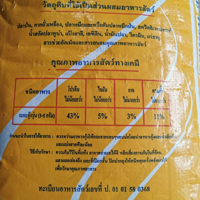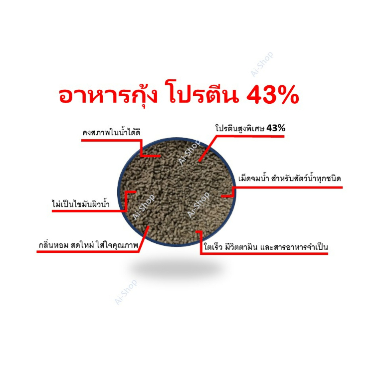 อาหารกุ้งพรีเมี่ยม โปรตีนสูงพิเศษ 43% โตเร็ว สีสวย น้ำไม่เสีย จัดส่งรวดเร็ว ราคาประหยัด ค่าขนส่งถูก
