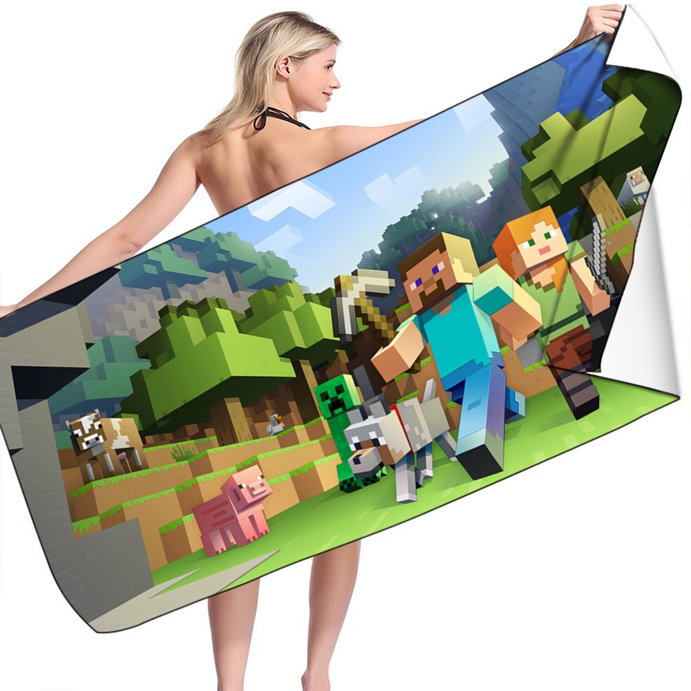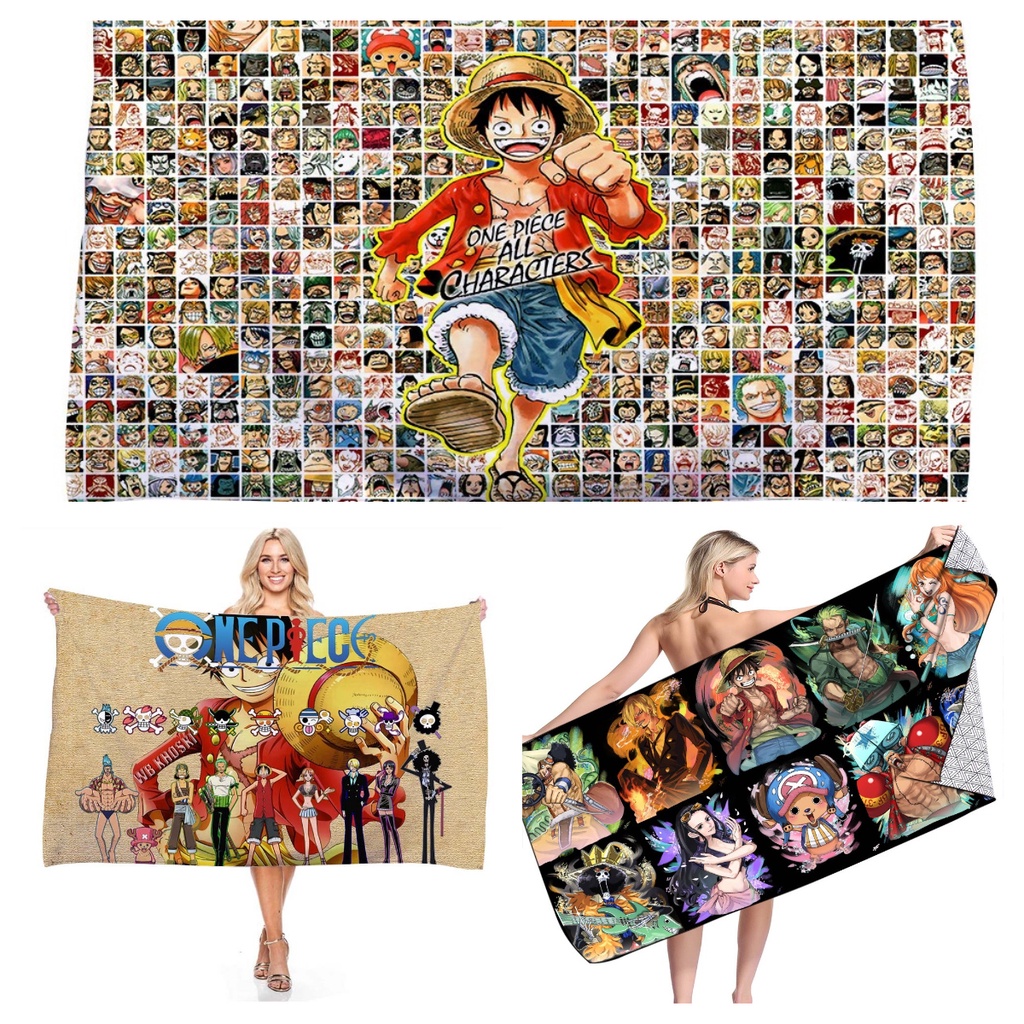 ผ้าขนหนูไมโครไฟเบอร์ ลายการ์ตูนอนิเมะ Minecraft Roblox ONE PIECE ขนาดใหญ่ 75×150 ซม. อุปกรณ์เสริม สําหรับตั้งแคมป์ ชายหาด กีฬา