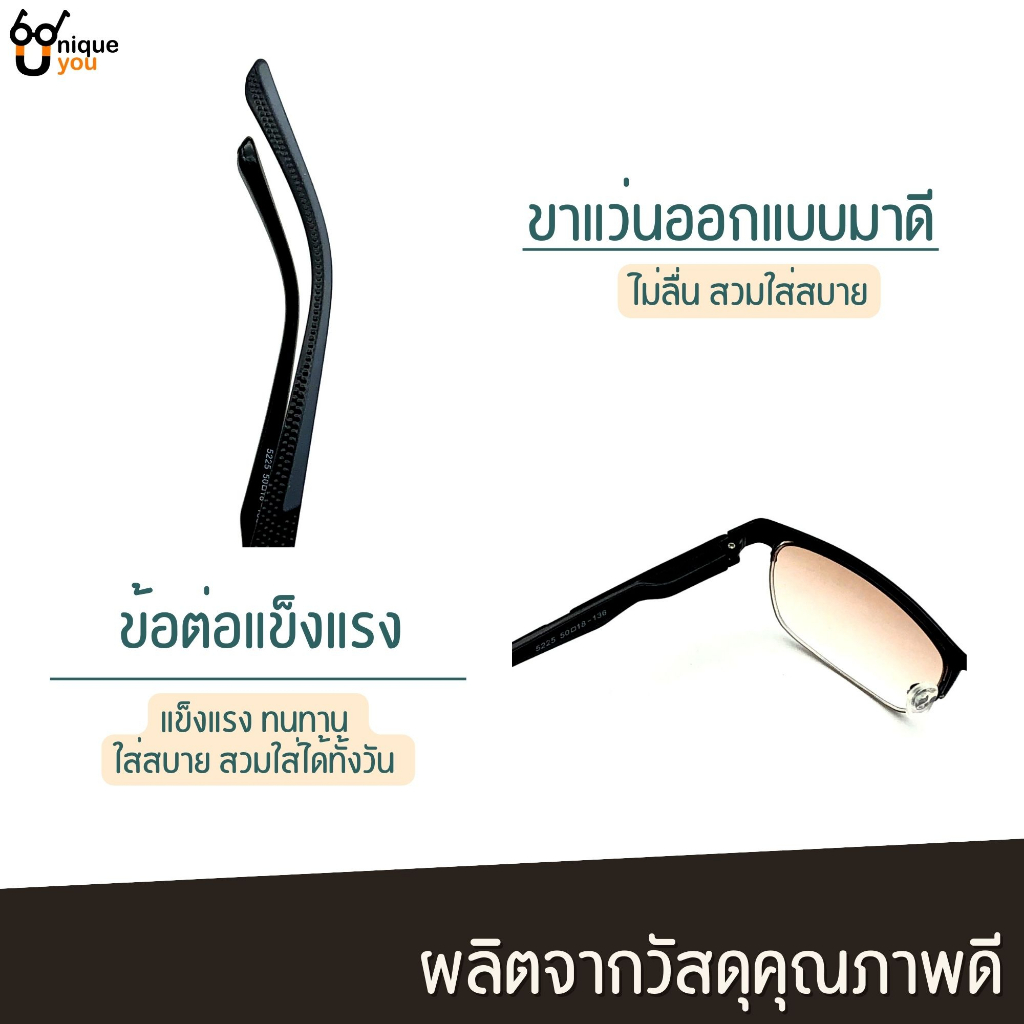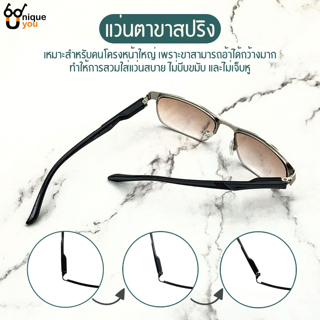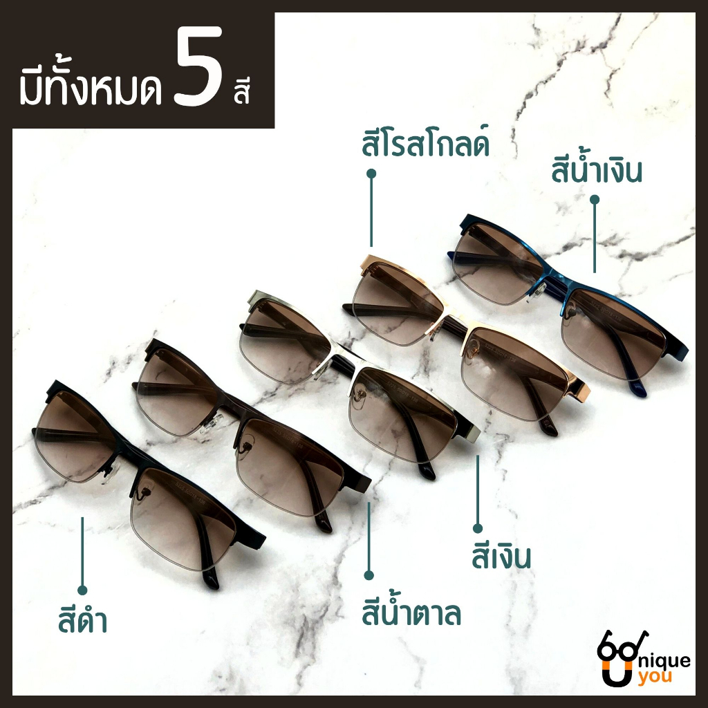 UniqueYou แว่นสายตาสั้น เลนส์สายตากันแดด ขาสปริง ใส่ขับรถ กรอบสเตนเลสกึ่งไร้กรอบ สินค้าส่งจากไทย 5225Lenstea