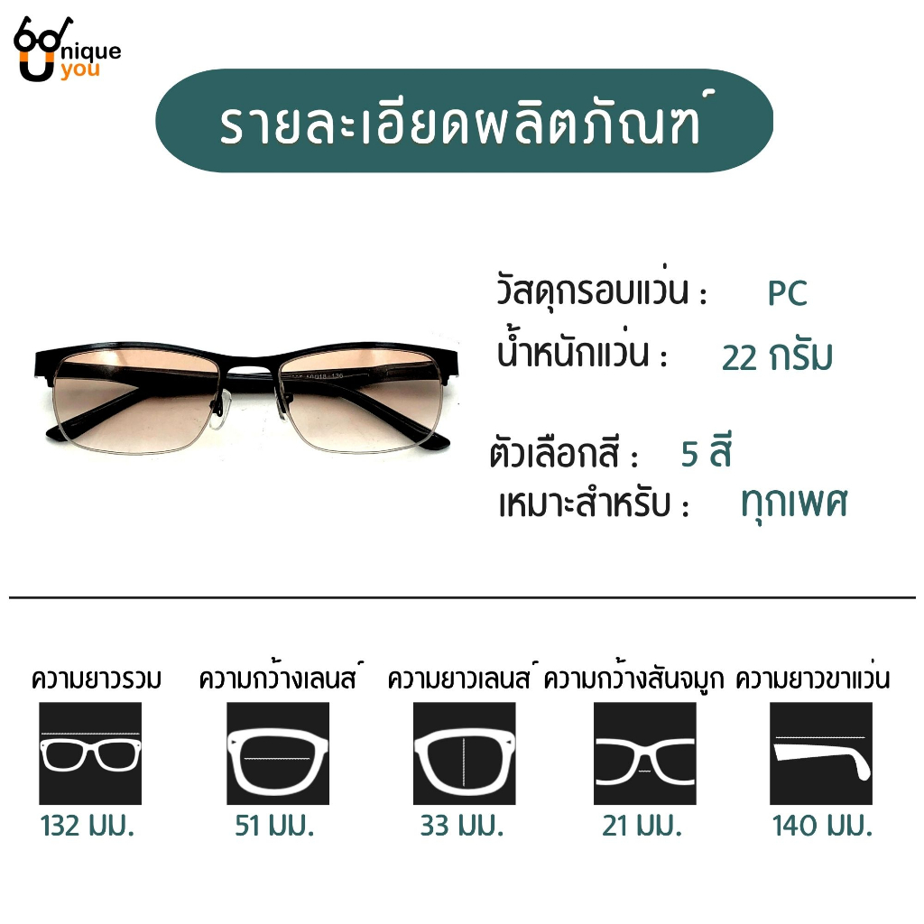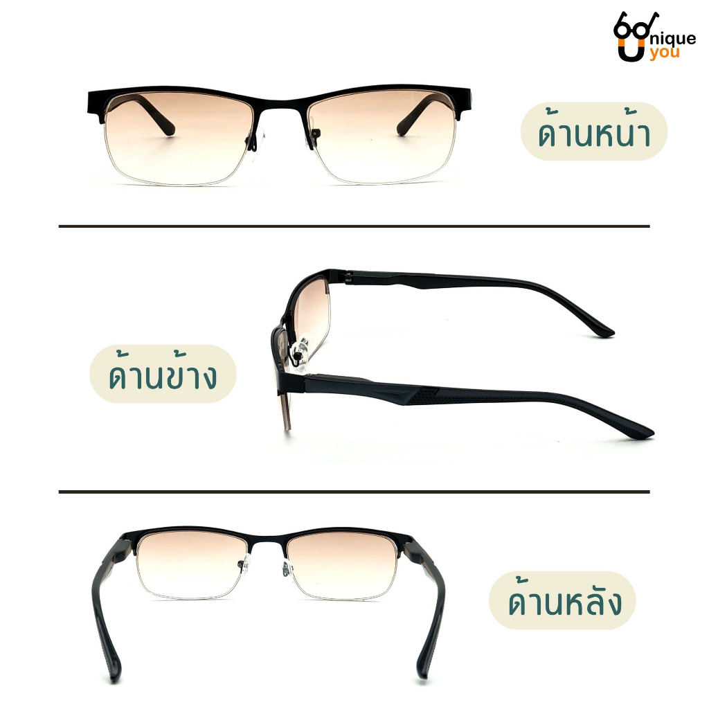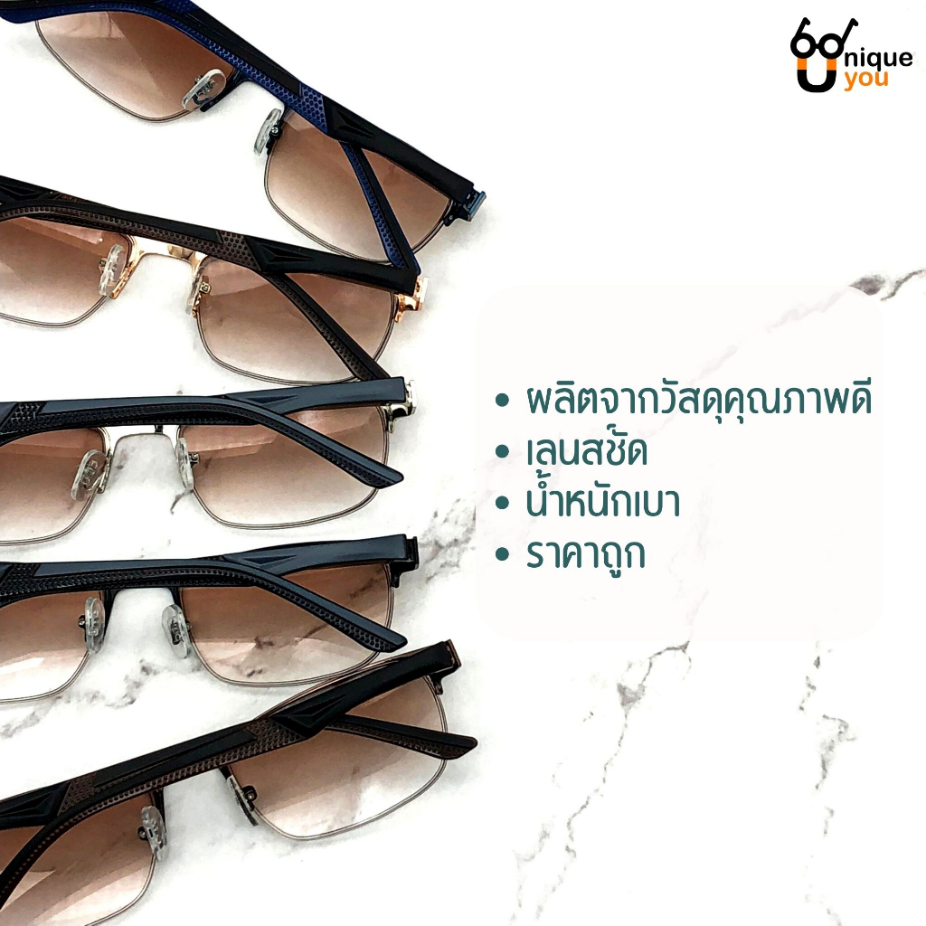 UniqueYou แว่นสายตาสั้น เลนส์สายตากันแดด ขาสปริง ใส่ขับรถ กรอบสเตนเลสกึ่งไร้กรอบ สินค้าส่งจากไทย 5225Lenstea
