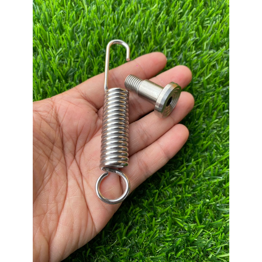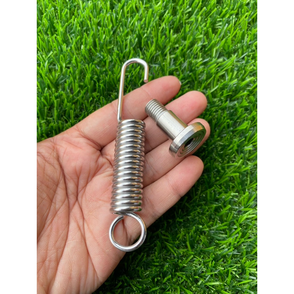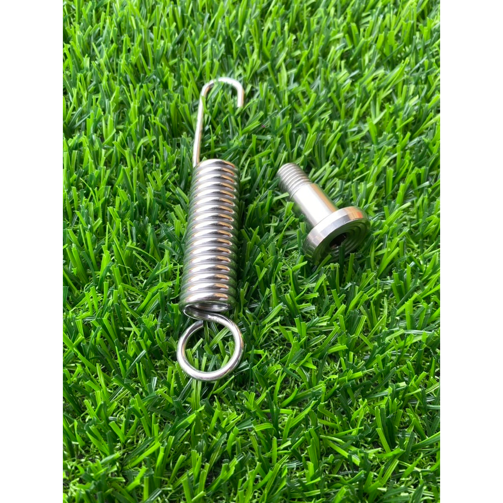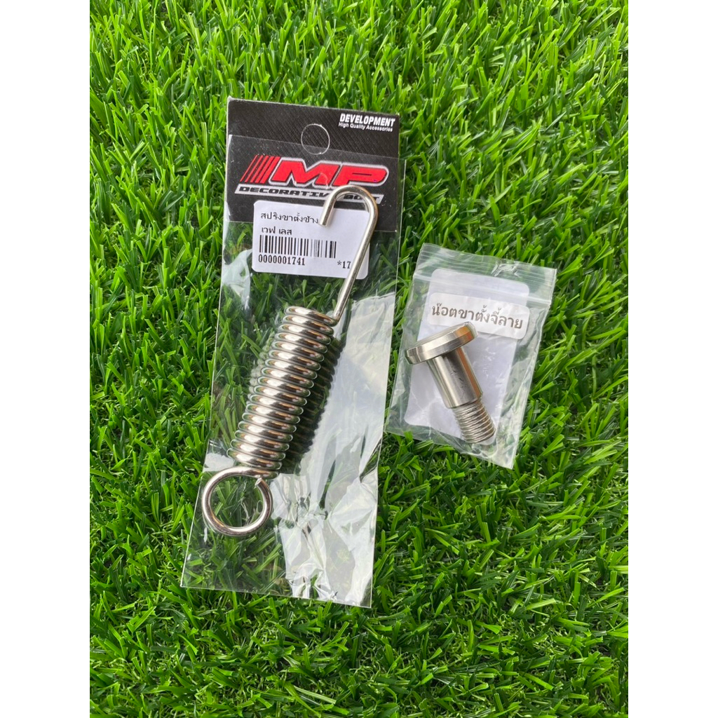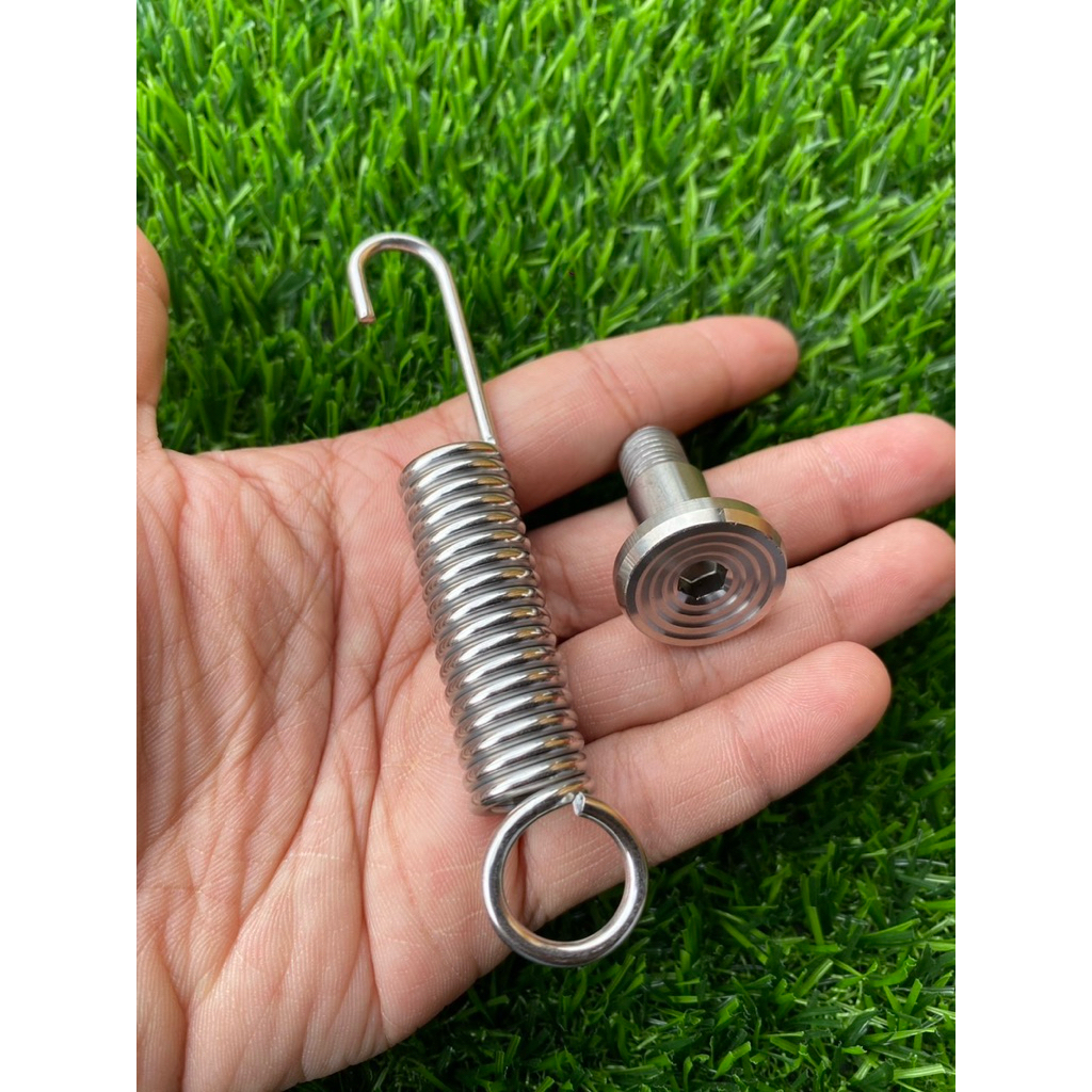 น็อตขาตั้งเดี่ยว เลส จี้ลาย + สปริงขาเดี่ยว เลส Honda Yamaha Kawasaki Wave Sonic Kr mio nouvo