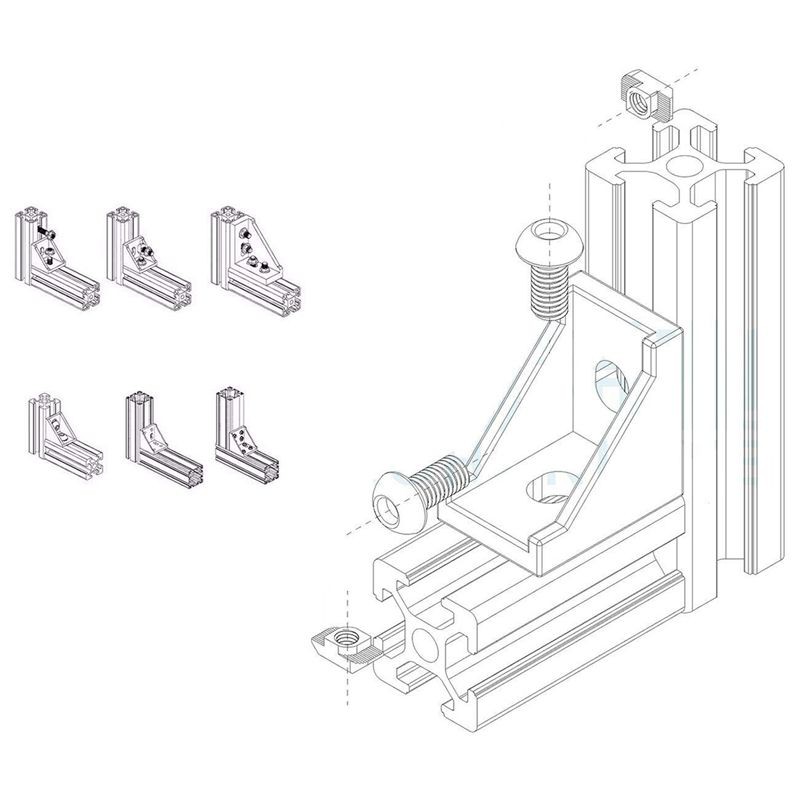 2020 Series Aluminum Profile Connector Set widely used for building industrial aluminum frame structures, 3D printers, CNC Routers, CNC laser-cutters, Robotics Projects