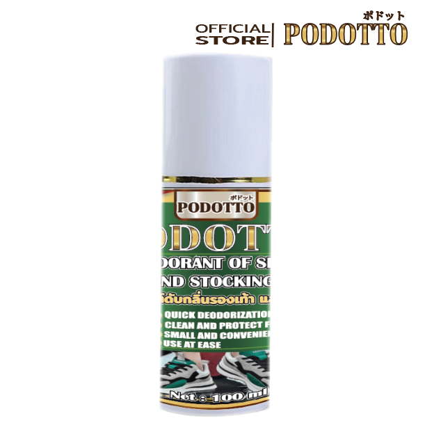 สเปรย์ดับกลิ่นรองเท้า ถุงเท้า ถุงน่อง เสื้อผ้า PODOTTO ฆ่าเชื้อแบคทีเรียลดกลิ่นเหม็นอับชื้น แห้งเร็ว สะอาด ขนาด 100ml