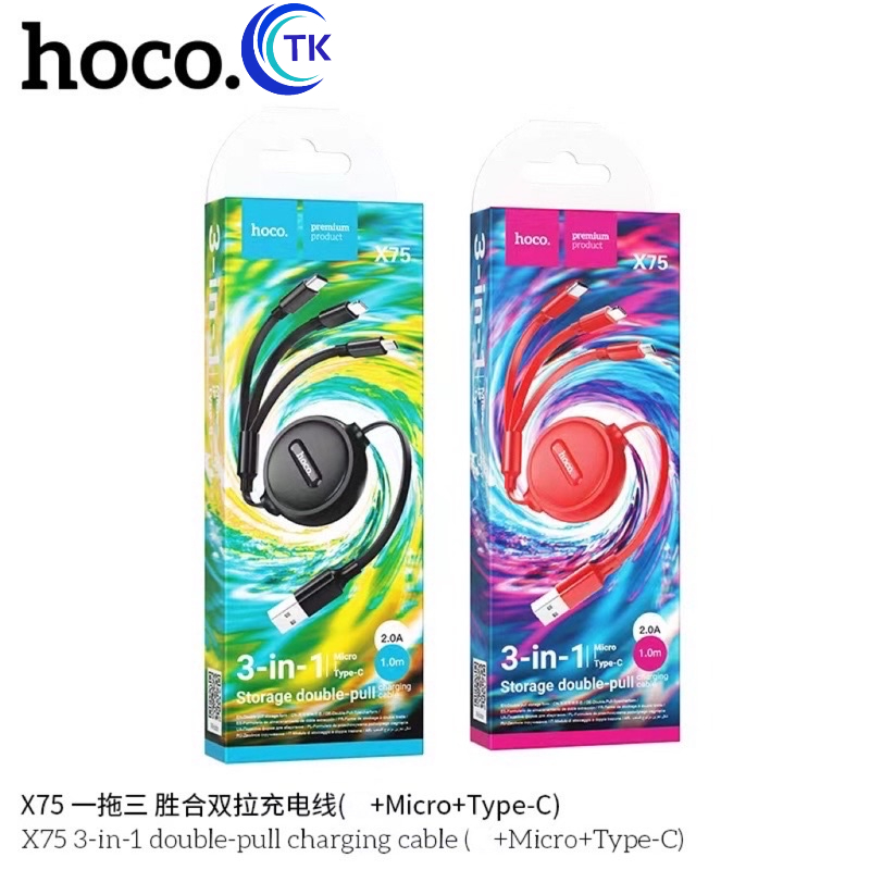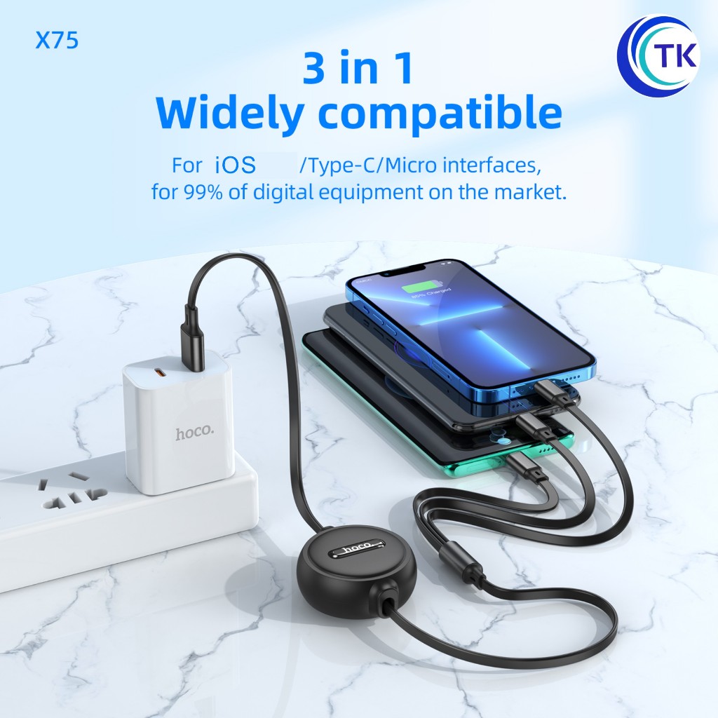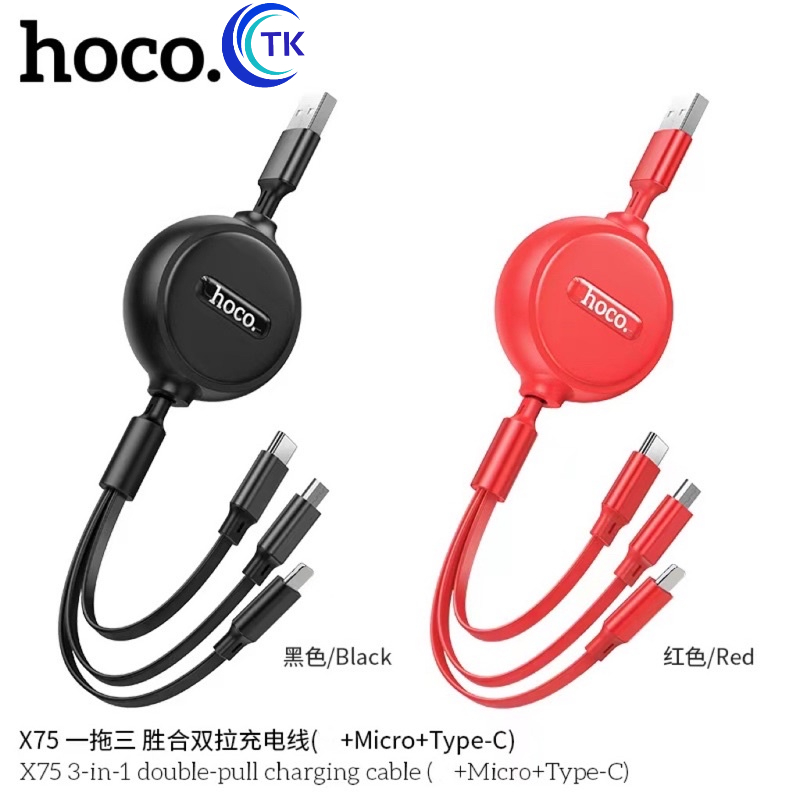 “NEW” Hoco X75 สายชาร์จ3หัวแบบเก็บสาย สำหรับ micro USB /for L / Type C ใหม่ล่าสุด พร้อมส่ง