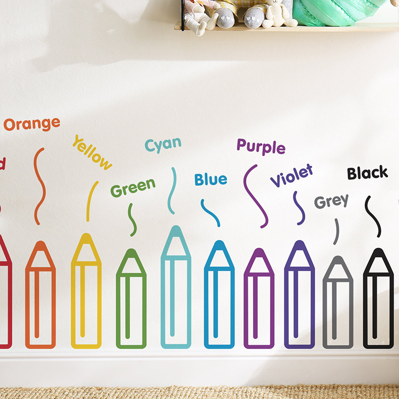 2 ชิ้น / เซต สติกเกอร์ติดผนัง, สติกเกอร์ติดผนัง PVC มีกาวในตัว, สติกเกอร์ตกแต่งผนังห้องเด็ก, สติกเกอร์ติดผนังดินสอสี สร้างสรรค์