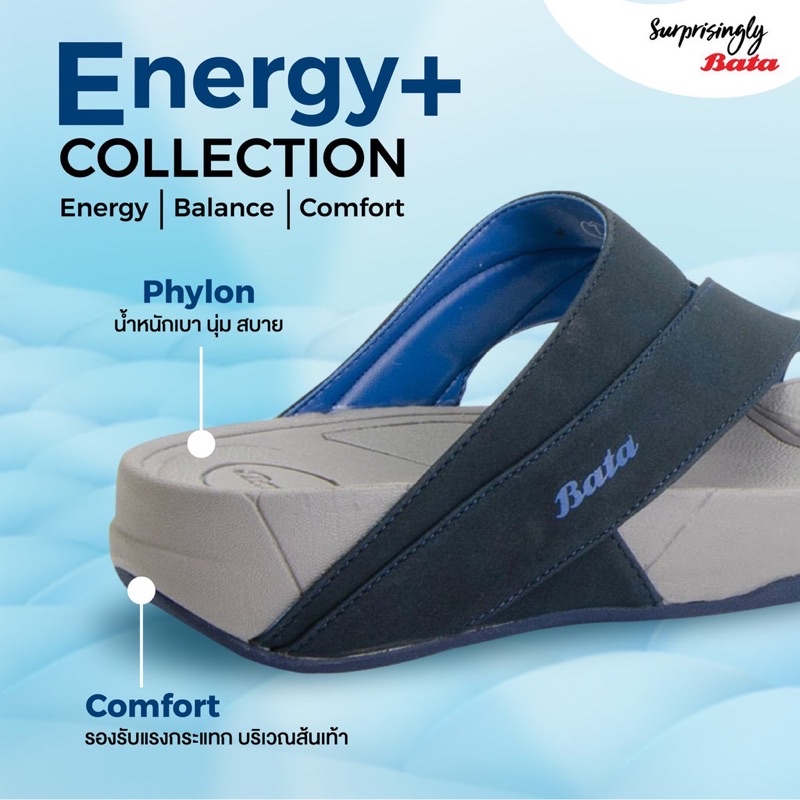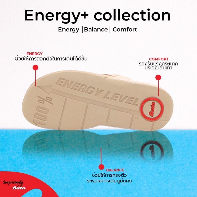 รองเท้าแตะ Bata รุ่น Energy+ รองเท้าแตะแบบหนีบ สายคาดรองเท้าตัดเย็บอย่างดี นิ่มสบาย ไม่ระคายผิว พื้นรองเท้าหนาออกแบบสอดรับกับรูปเท้าเพื่อการวางเท้าที่ดีและซับแรงกระแทกข