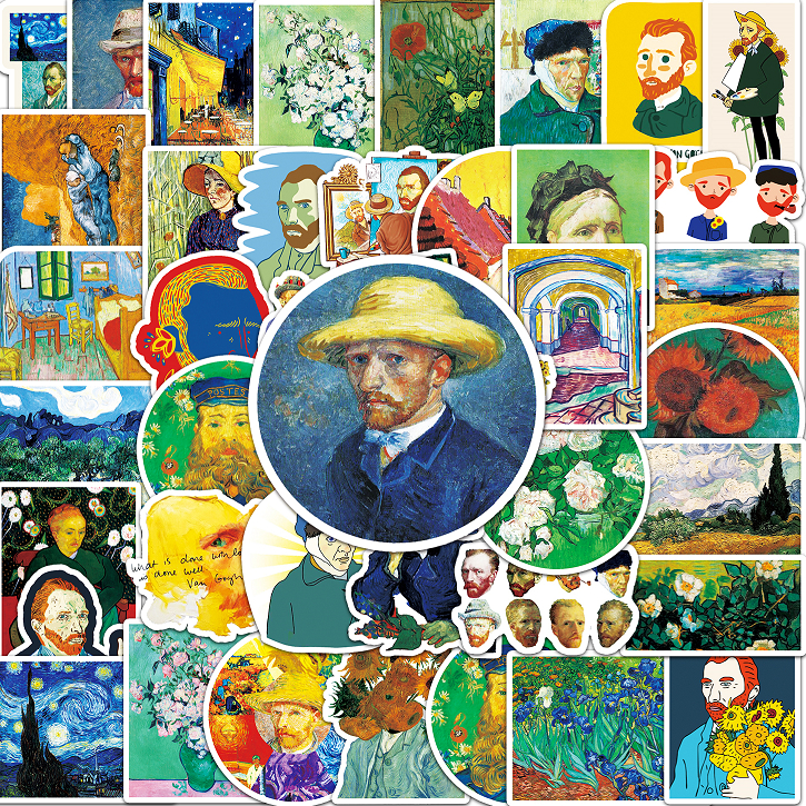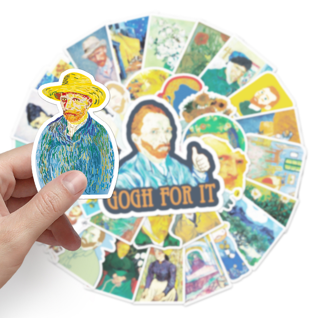 50 ชิ้นการ์ตูนน่ารัก Van gogh ภาพวาดสีน้ํามันการ์ตูนสติกเกอร์กันน้ําสเก็ตบอร์ดสโนว์บอร์ด Retro สติกเกอร์ไวนิล Graffiti Notebook สติกเกอร์