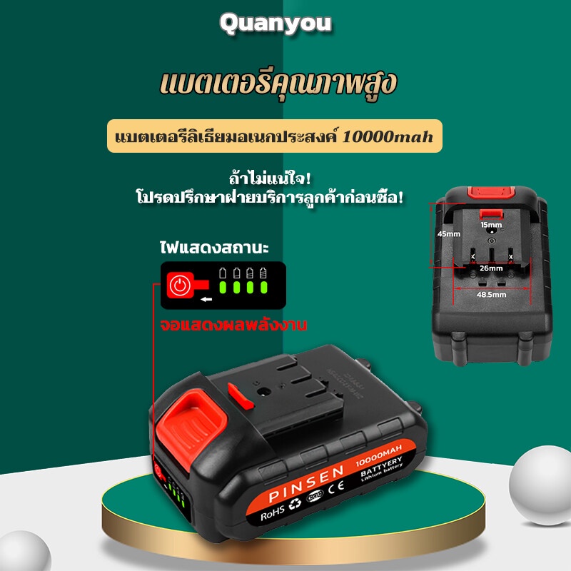 10000mAh แบตเตอรี่เครื่องตัดหญ้าไฟฟ้า Quanyou 21-198V เหมาะสำหรับเครื่องตัดหญ้าส่วนใหญ่ จัดส่งจากกรุงเทพ ชาร์จเร็ว