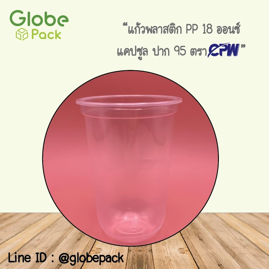 แก้วพลาสติก PP แคปซูล 18 ออนซ์ ปาก 95 เรียบใส ตรา CPW (เฉพาะแก้วไม่รวมฝา)