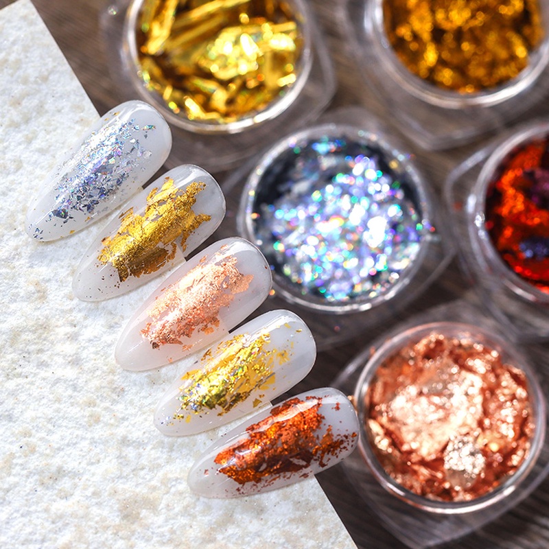 Born PRETTY กลิตเตอร์ฟอยล์สีทอง เลื่อมเกล็ด กลิตเตอร์ อลูมิเนียมฟอยล์ ไม่สม่ําเสมอ สําหรับตกแต่งเล็บ ผงโครเมี่ยม ตกแต่งเล็บ