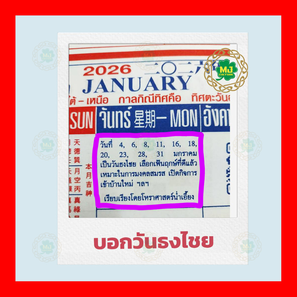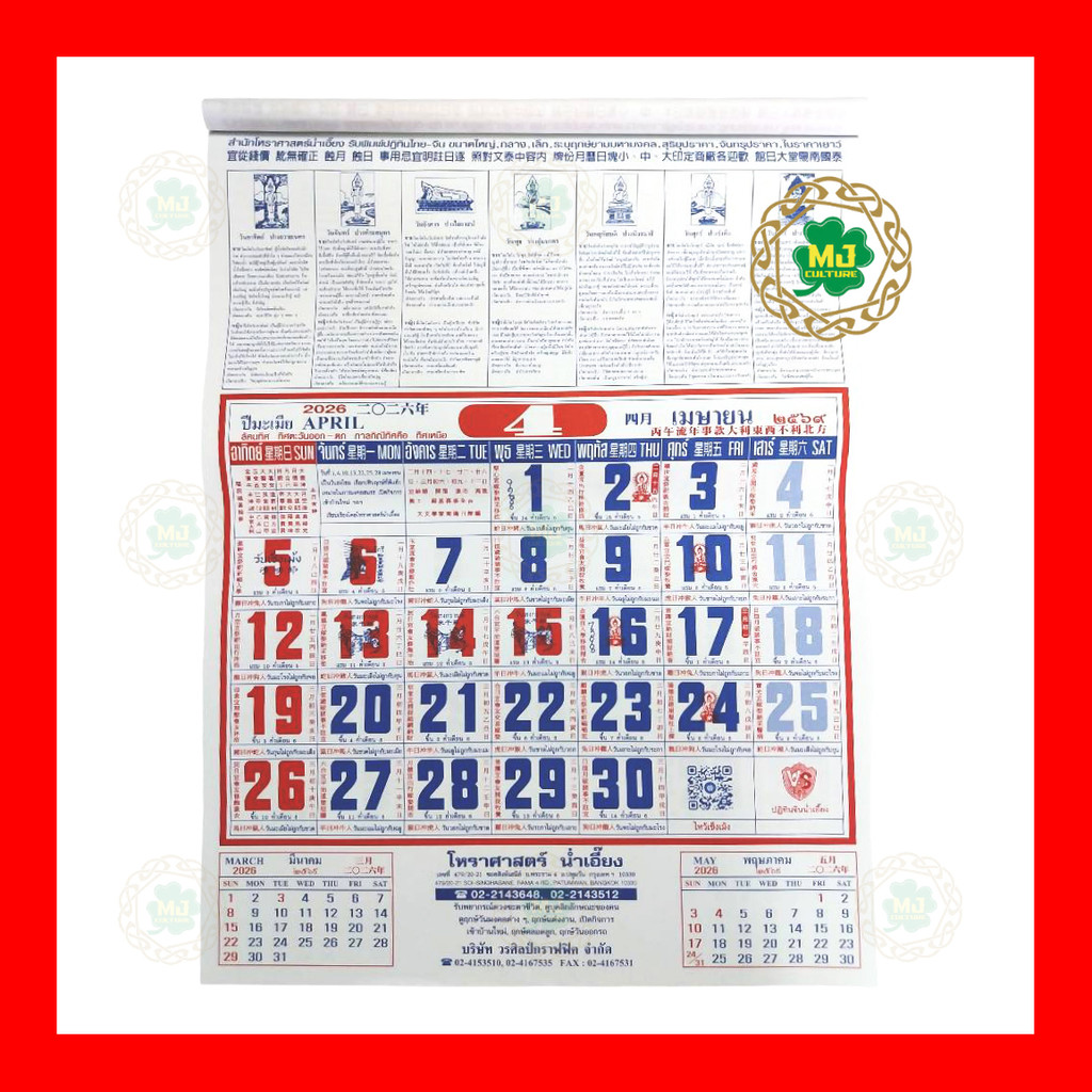 **มาใหม่ พร้อมส่ง** ปฏิทินไทย-จีน ปฏิทินน่ำเอี๊ยง ปี2026 พ.ศ.2569 ปฏิทินแขวน ปีมะเมีย แบบรายเดือน ดูหวย ปีม้า