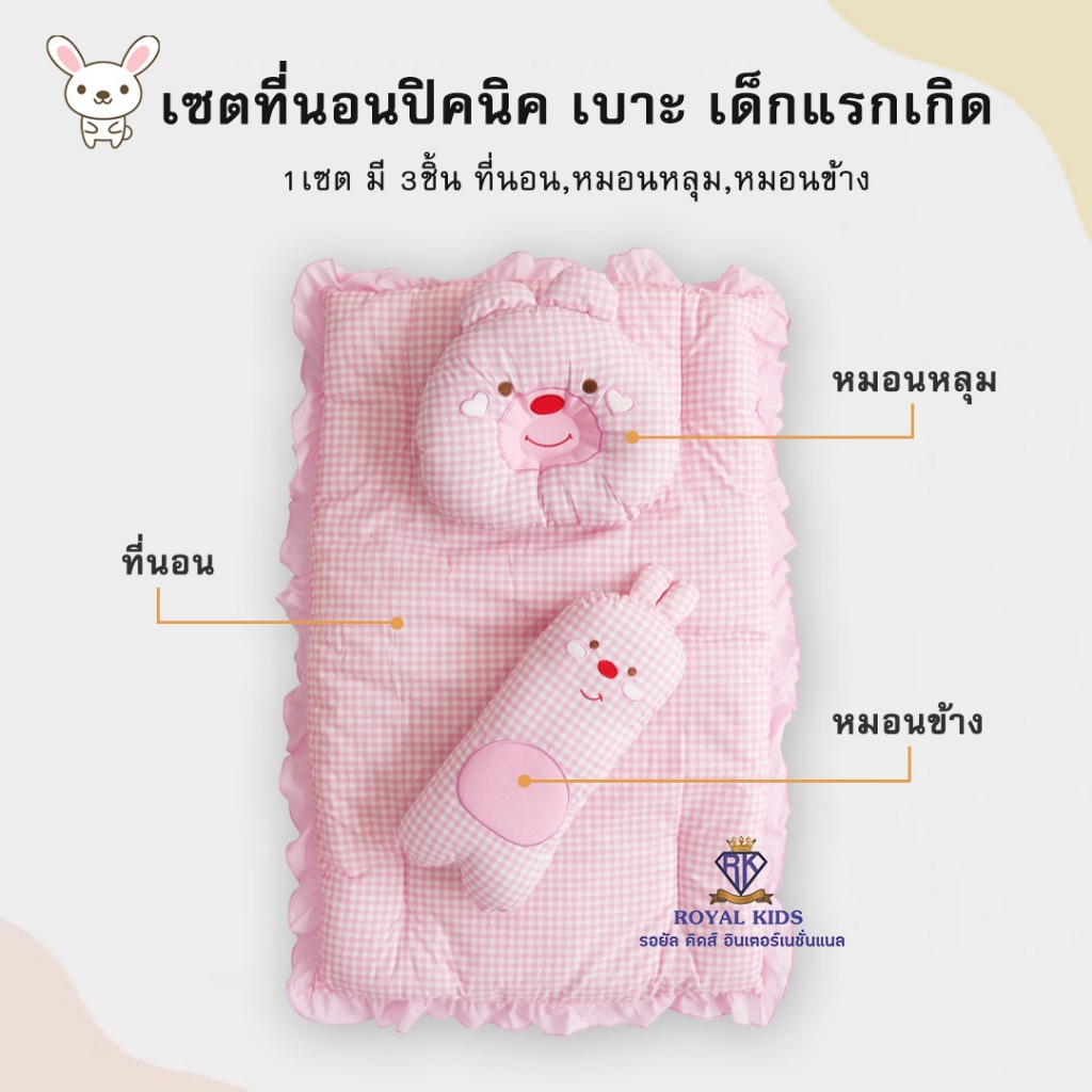 AR001 เซตที่นอนปิคนิค เบาะ เด็กแรกเกิด (1เซต มี 3ชิ้น ที่นอน,หมอนหลุม,หมอนข้าง) ที่นอนเด็กอนุบาล พับเก็บได้ พกพาสะดวก