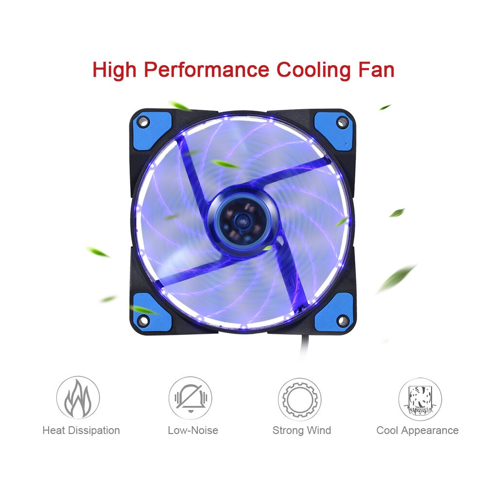 พัดลม CASE 12cm NUBWO NFT-100 AirForce 120mm 15 LED Cooling Fan 12V Low Noise Blue Light ( Green Option )