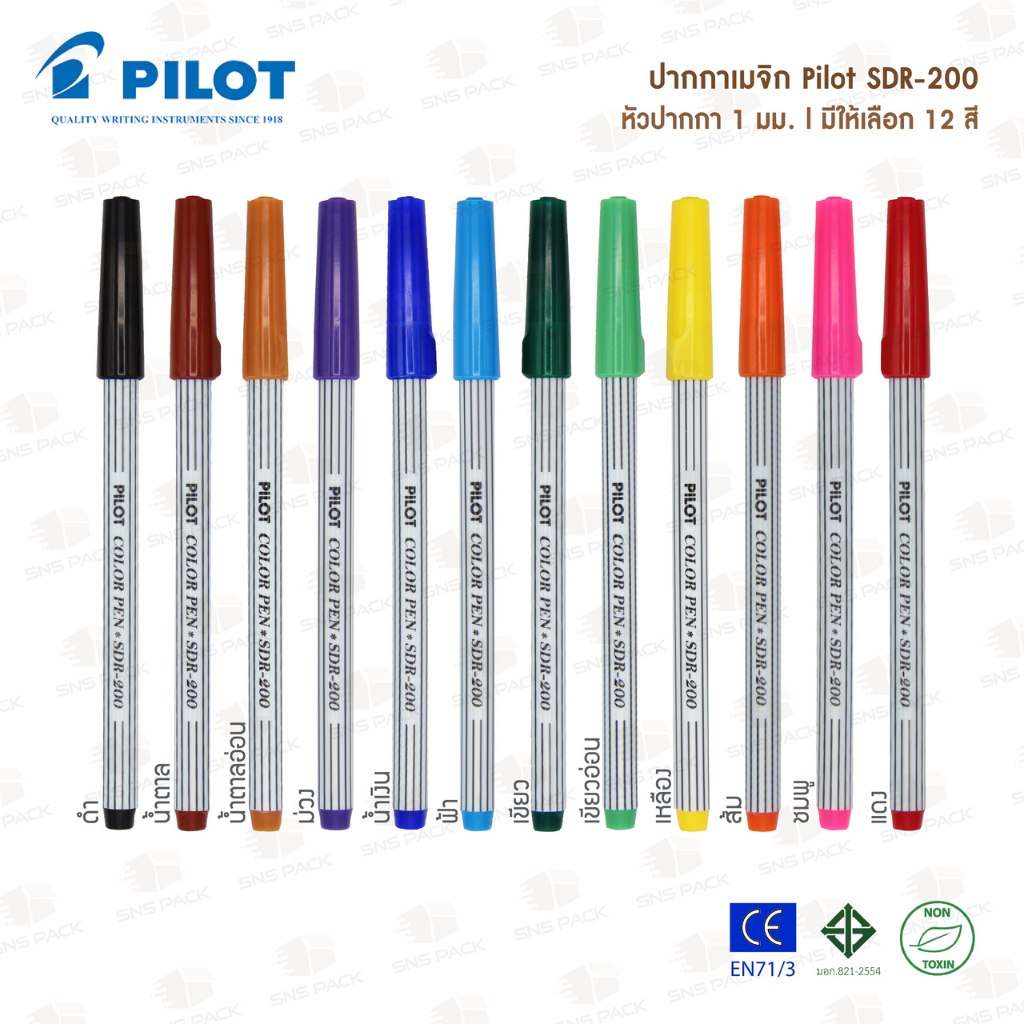 ปากกาเมจิก PILOT รุ่น SDR-200 ชุด 12 สี