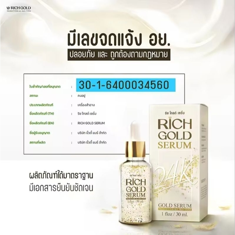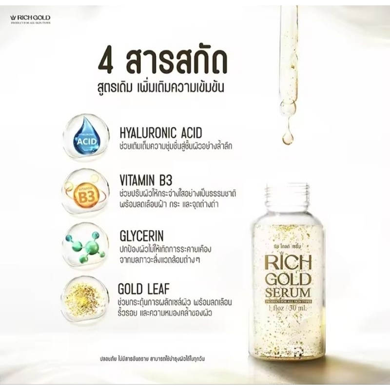 ริช โกลด์ เซรั่ม ทองคำแท้ 24K ?3 ขวด แถมสบู่ 1 ก้อน? ลดฝ้า กระ จุดด่างดำ
