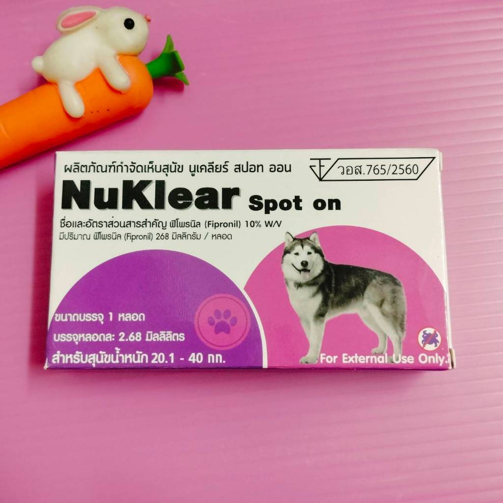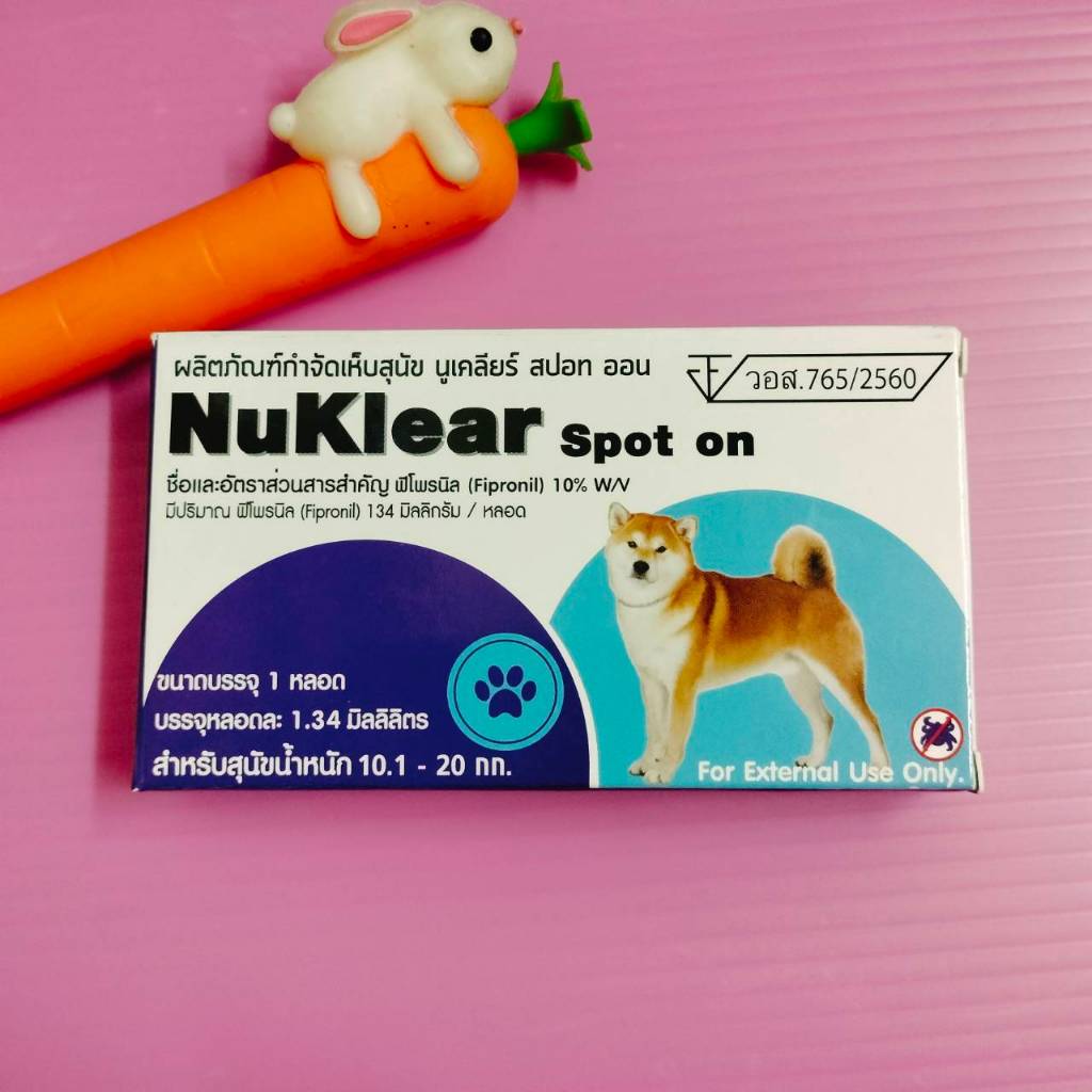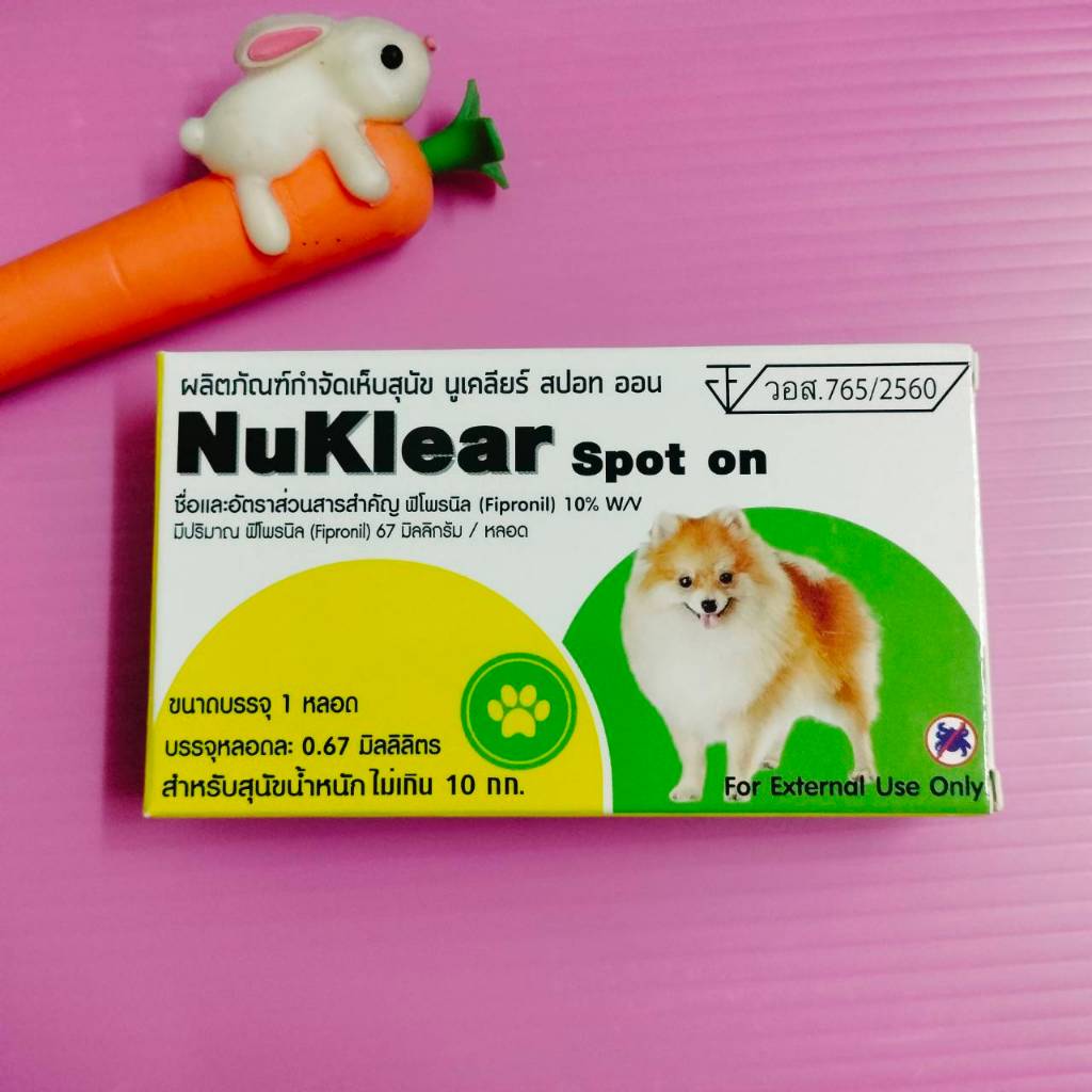 Nuklear ยาหยดกำจัด เห็บ หมัด สุนัข (อย.วอส. 765/2560) GreenVetz Spot On ยาหยดกำจัด เห็บ หมัด สุนัข (อย.วอส. 329/2567) สุนัข 2-10 กก สุนัข 10-20 กก สุนัข 20-40 กก ยาหยดกำจัดหมัด ไข่หมัด ตัวอ่อน ตัวเต็มวัย(ครบวงจร) ตัวยาหลัก : Fipronil (ฟิโปรนิล