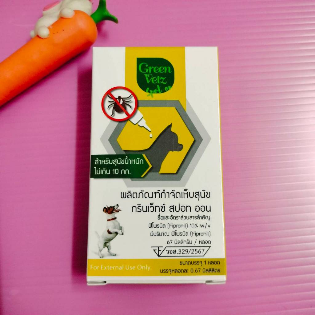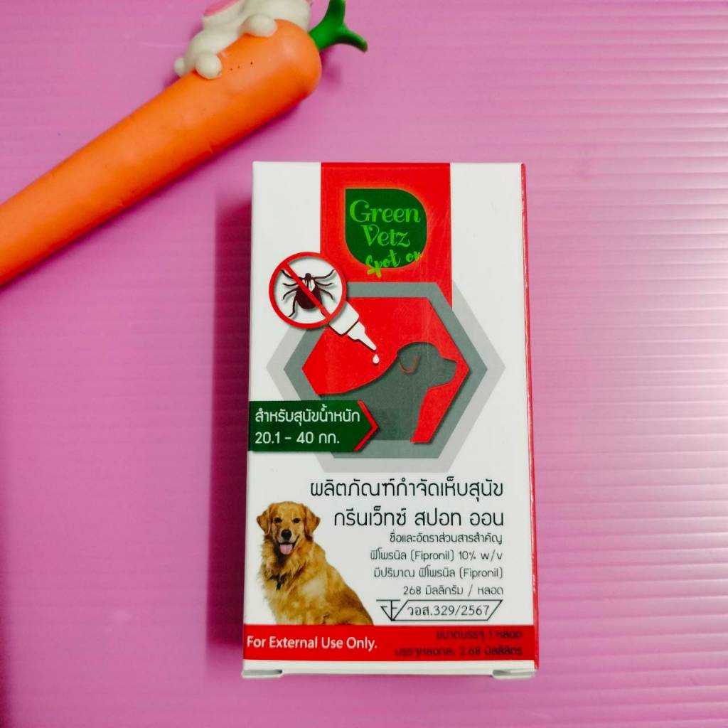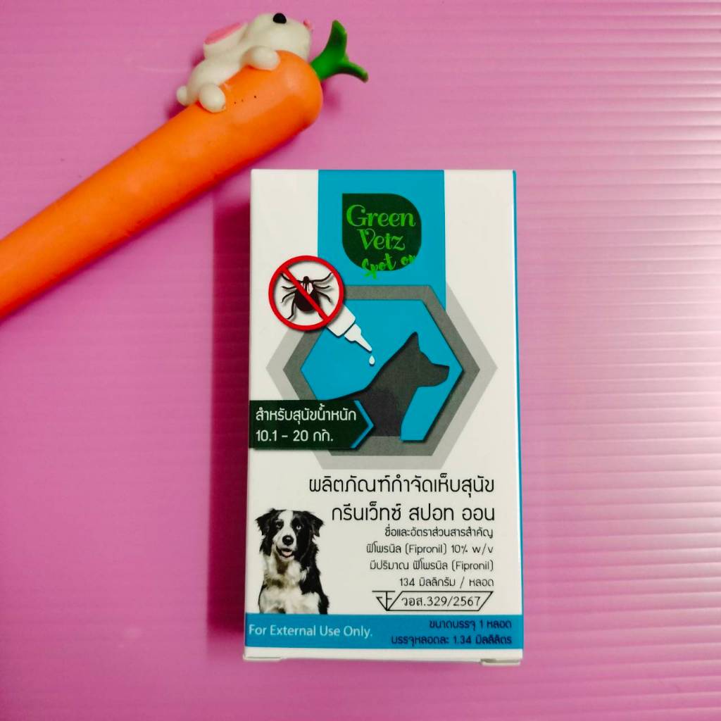 Nuklear ยาหยดกำจัด เห็บ หมัด สุนัข (อย.วอส. 765/2560) GreenVetz Spot On ยาหยดกำจัด เห็บ หมัด สุนัข (อย.วอส. 329/2567) สุนัข 2-10 กก สุนัข 10-20 กก สุนัข 20-40 กก ยาหยดกำจัดหมัด ไข่หมัด ตัวอ่อน ตัวเต็มวัย(ครบวงจร) ตัวยาหลัก : Fipronil (ฟิโปรนิล