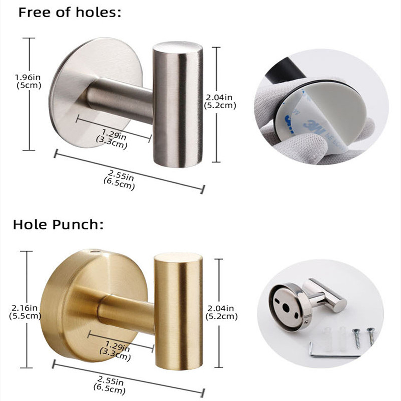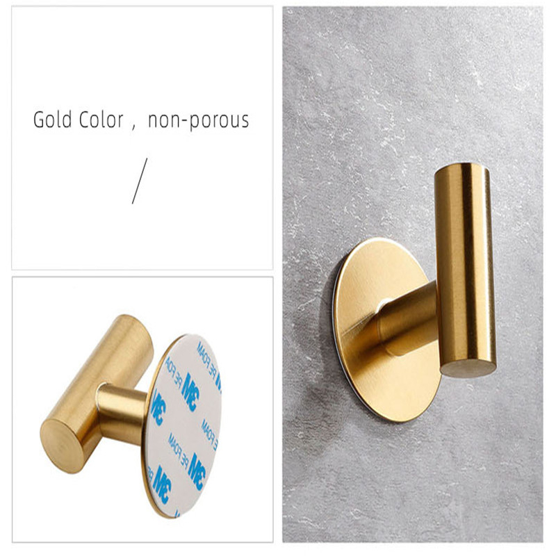 ชั้นวางของในห้องน้ํา ตะขอแขวนเสื้อผ้า สเตนเลส ตะขอเดี่ยว สีทอง แปรง ห้องน้ํา เสื้อผ้า ผ้าขนหนู ตะขอเสื้อโค้ท ตะขอติดผนัง ไม่ต้องเจาะรู