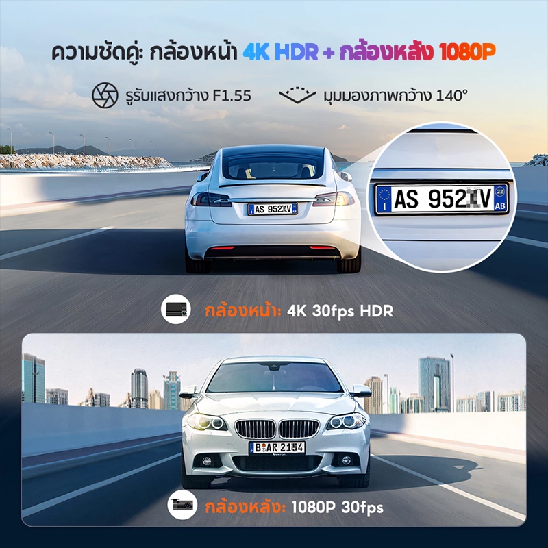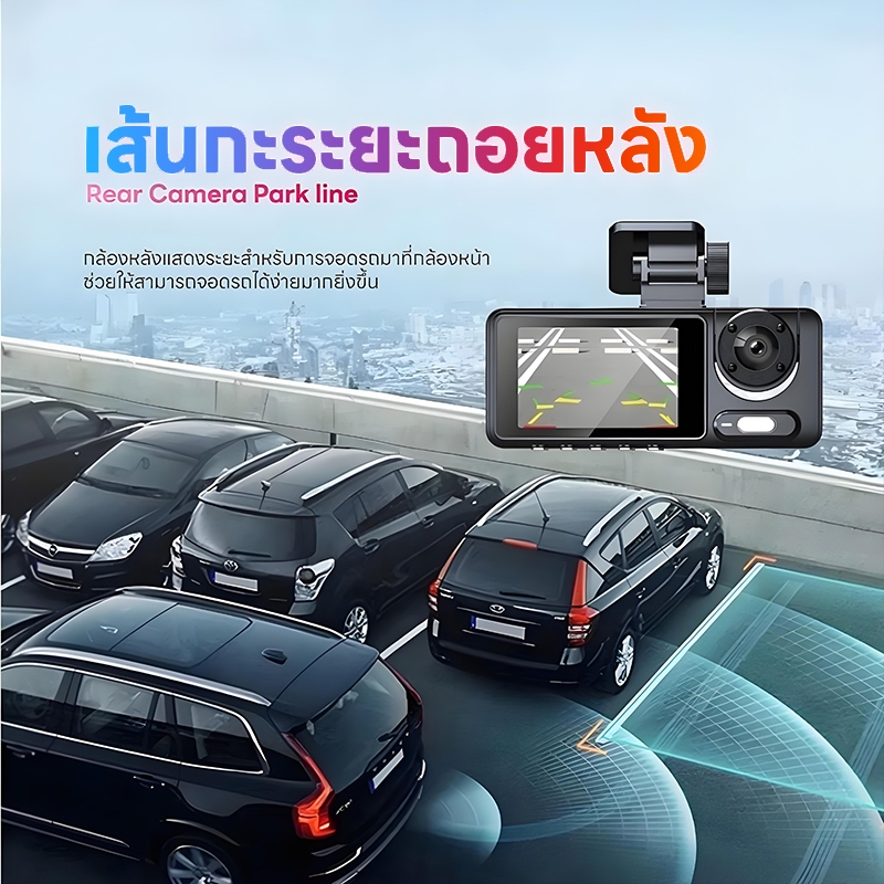?car camera?กล้องติดรถยนต์ กล้องรถยนต์ กล้องหน้ารถ 3เลนส์ หน้า+หลัง Dash Cam Full HD 1080P