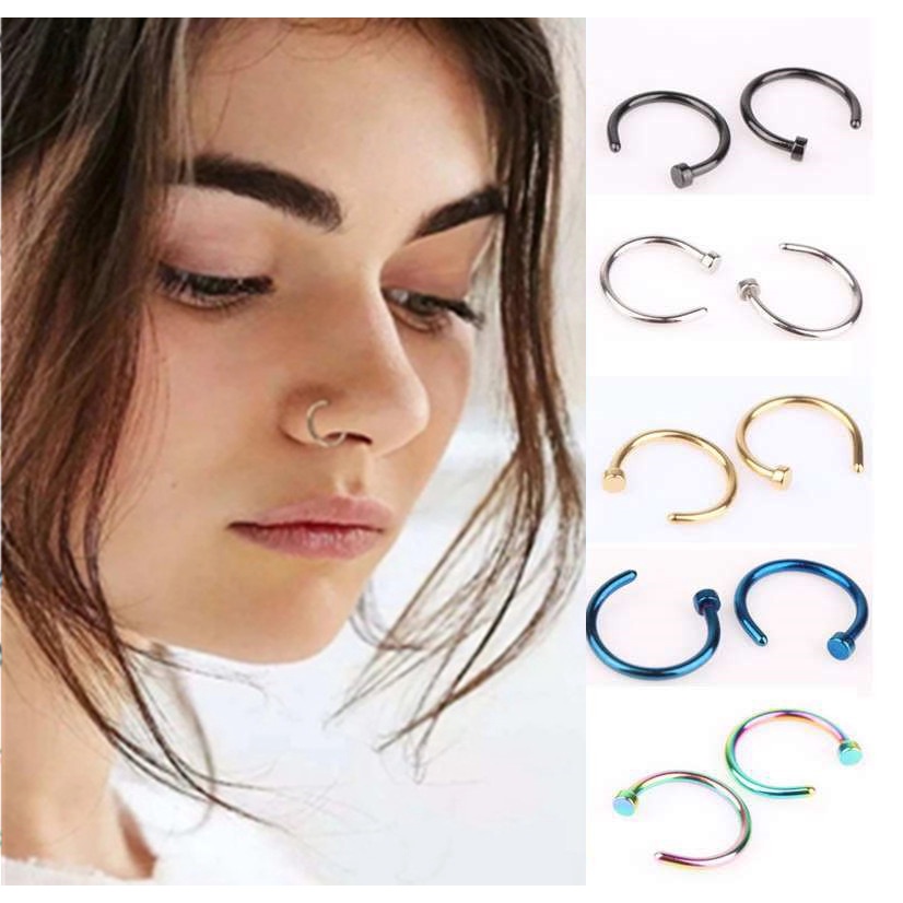 จิวจมูกปลอม สเตนเลส สไตล์พังก์ ไม่ต้องเจาะ เครื่องประดับร่างกาย 1 ชิ้น