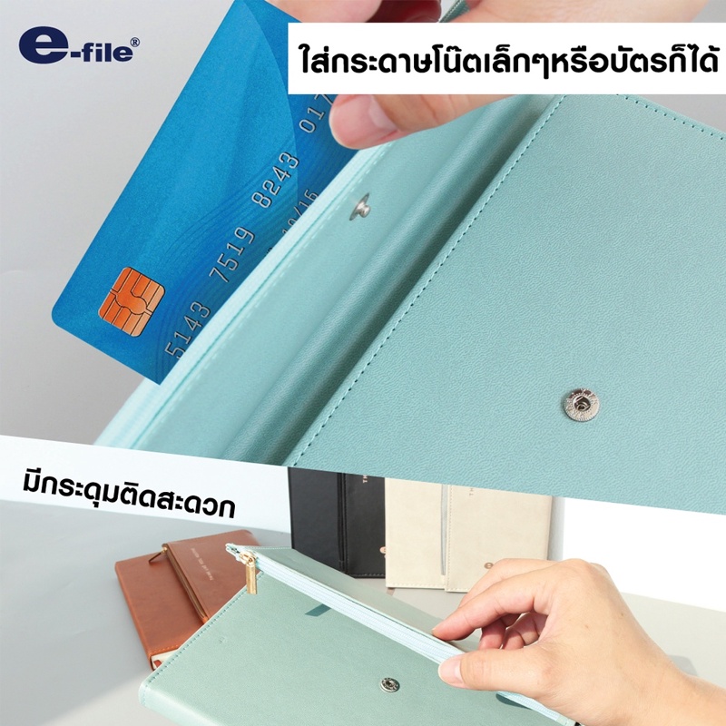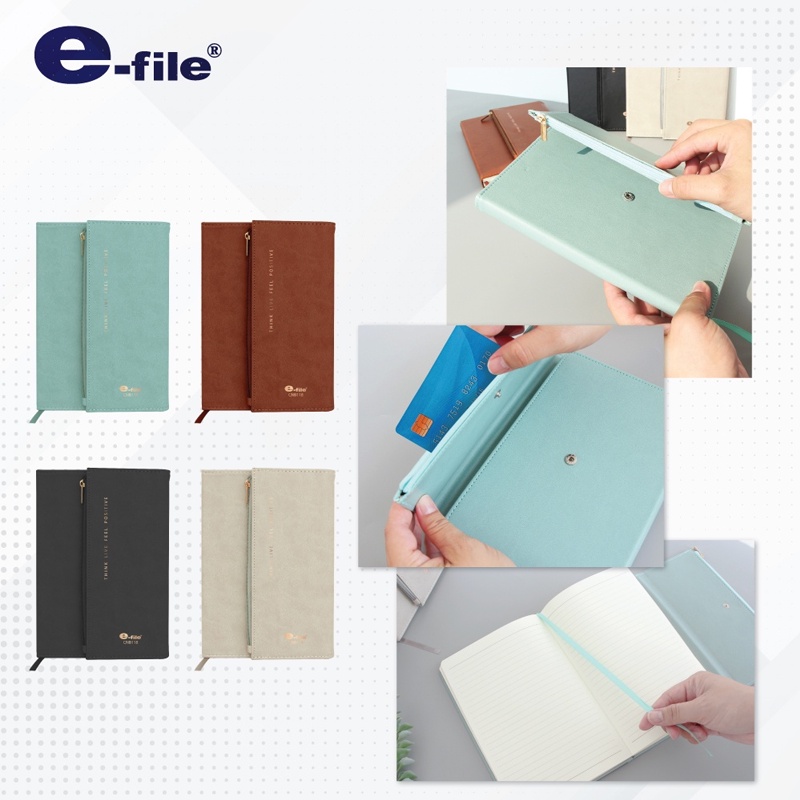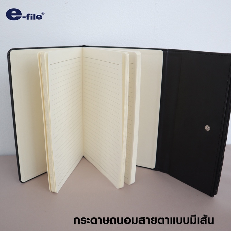 สมุดโน๊ต e-file CNB118 ปกหนัง PU จดบันทึก มีเส้น อีไฟล์ A5 80GSM. มีช่องใส่บัตร