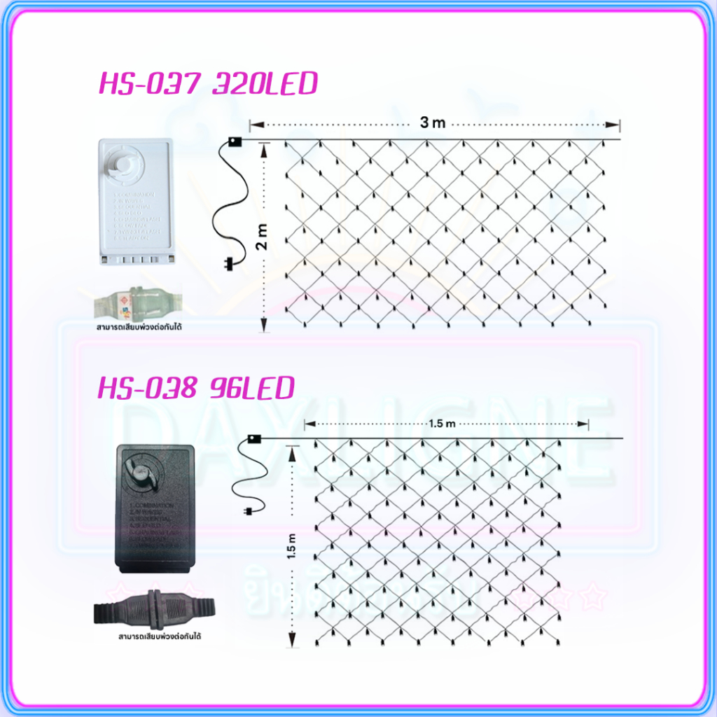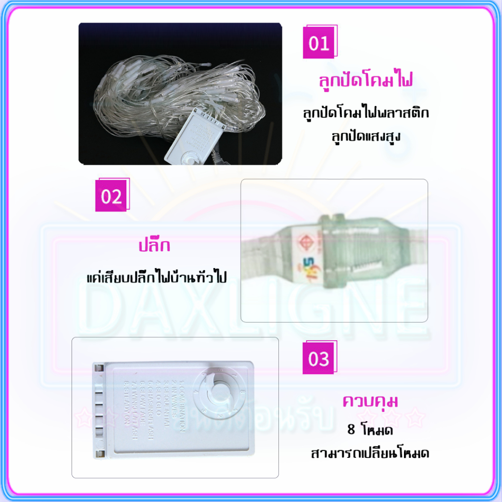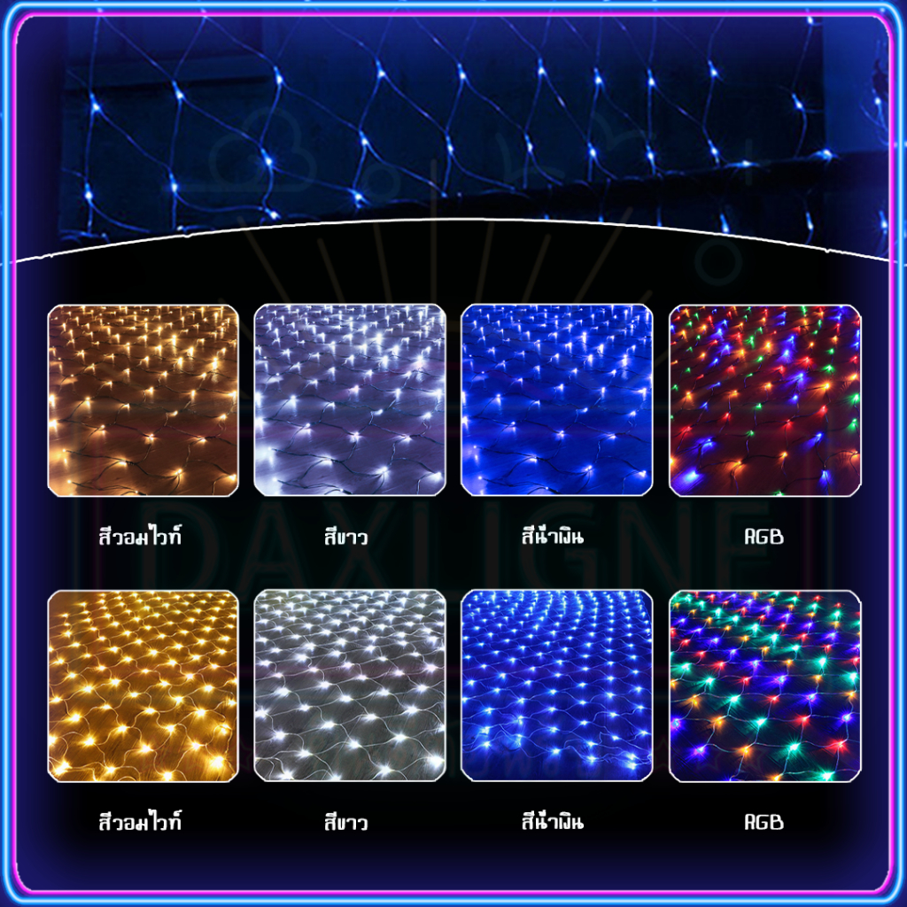 ตาข่ายไฟ ไฟกระพริบ 480 LED ไฟตาข่าย3*3M ตาข่ายไฟประดับ ไฟประดับ ฟกระพริบ RGB ไฟตาข่าง Net Lights string COD