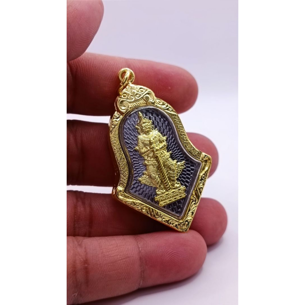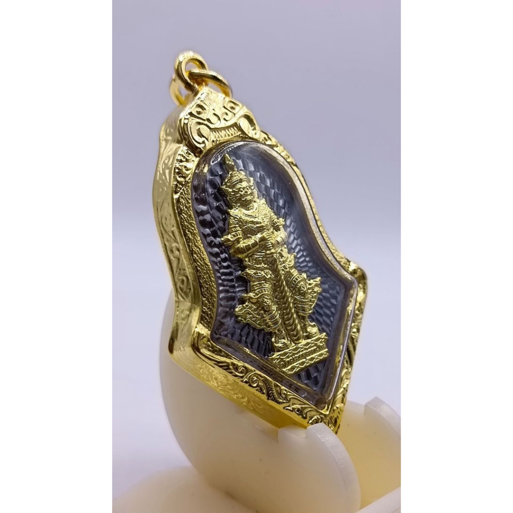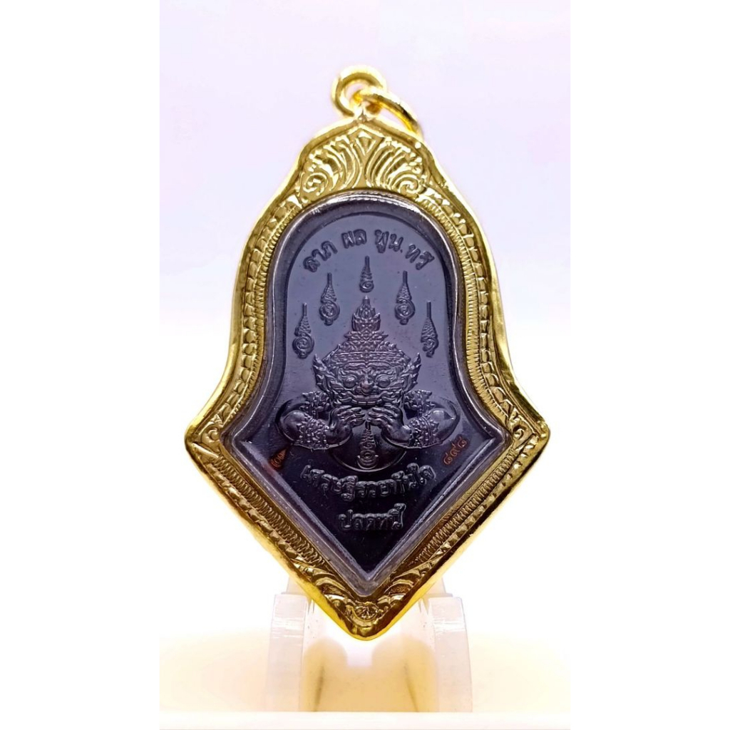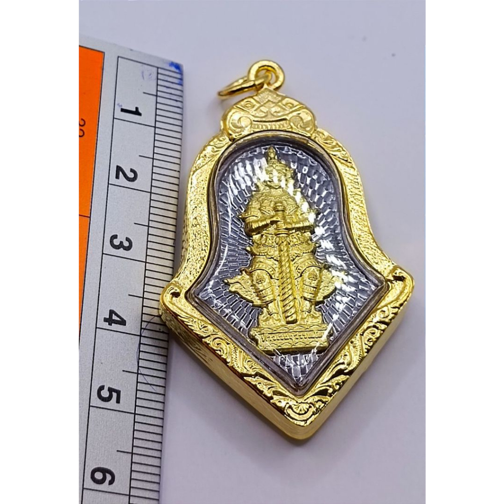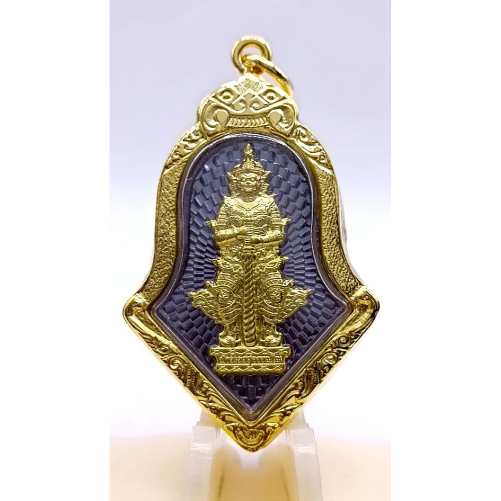 K817 ท้าวเวสสุวรรณ วัดจุฬามณี สมุทรสงคราม หน้ากากทอง ตอกโค้ด ขนาด 3.0X5.0 ซม. กรอบทองไมครอน พร้อมส่ง