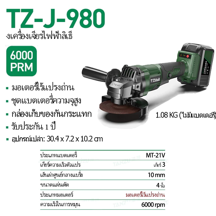 TANZU เครื่องเจียรไร้สาย 4 นิ้ว มอเตอร์ไร้แปรงถ่าน เครื่องเจียรไฟฟ้า/ขัด/ตัด อเนกประสงค์ TZ-980