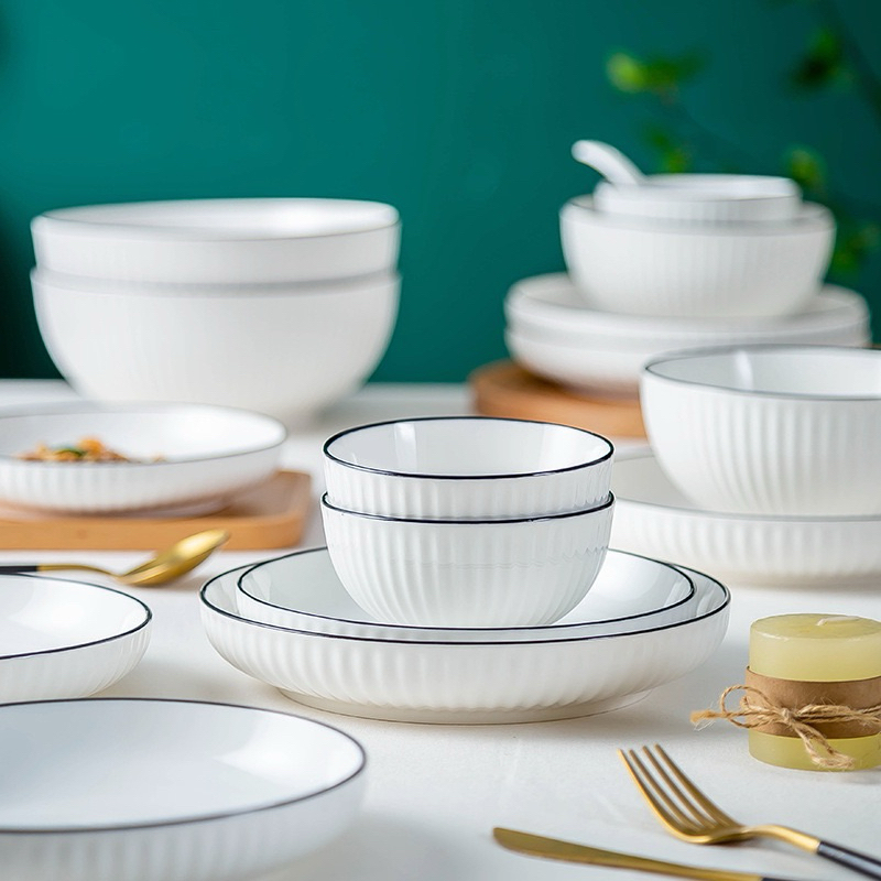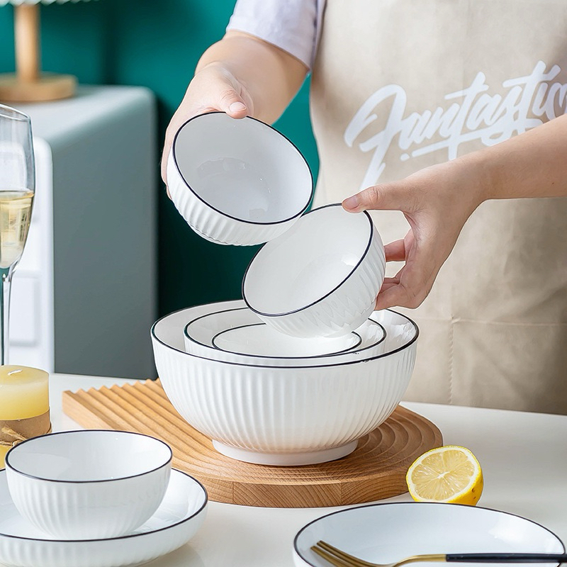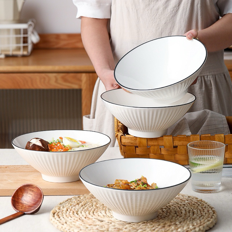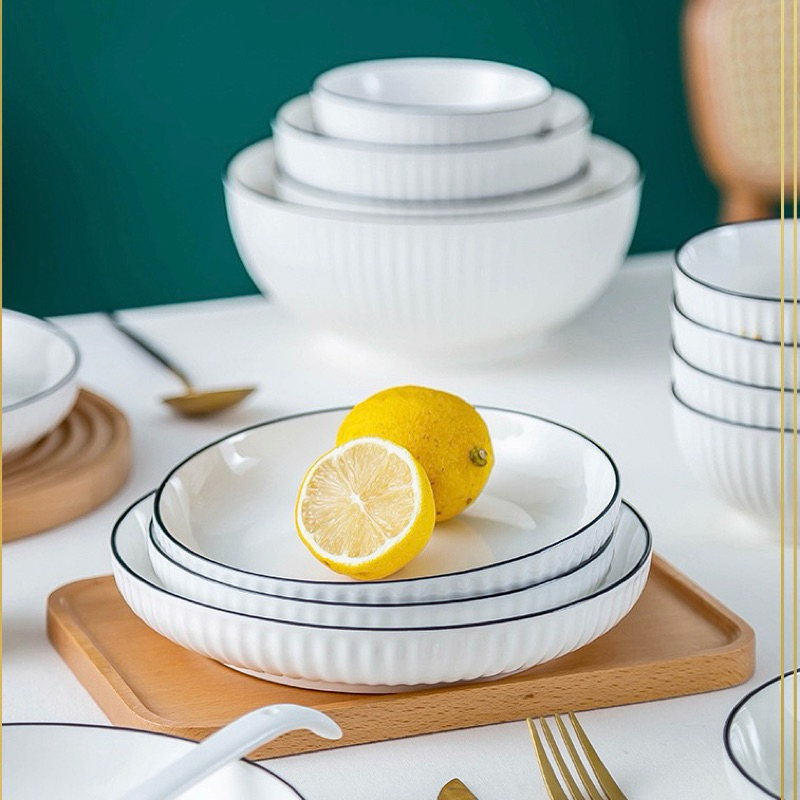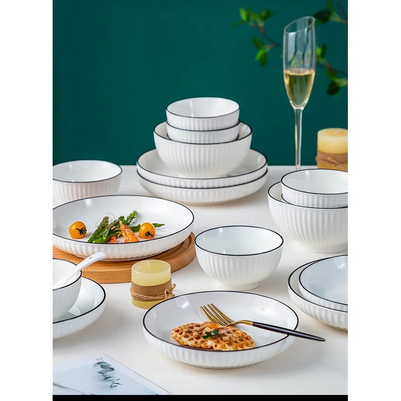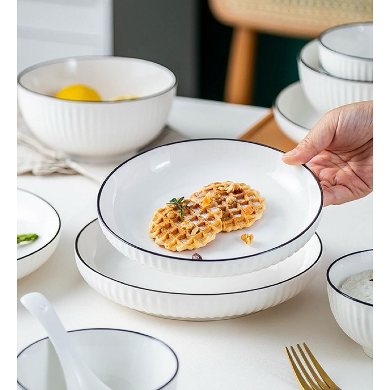 จานชามเซรามิค สไตล์มินิมอล จานชามขาวดำ เข้ี่่าไมโครเวฟได้ค่ะ