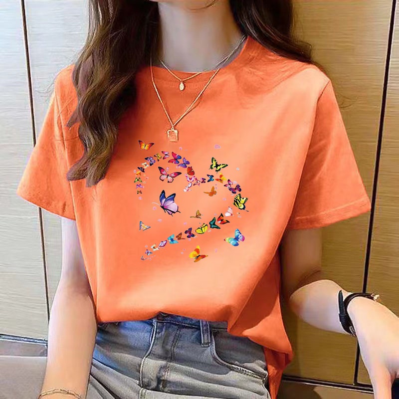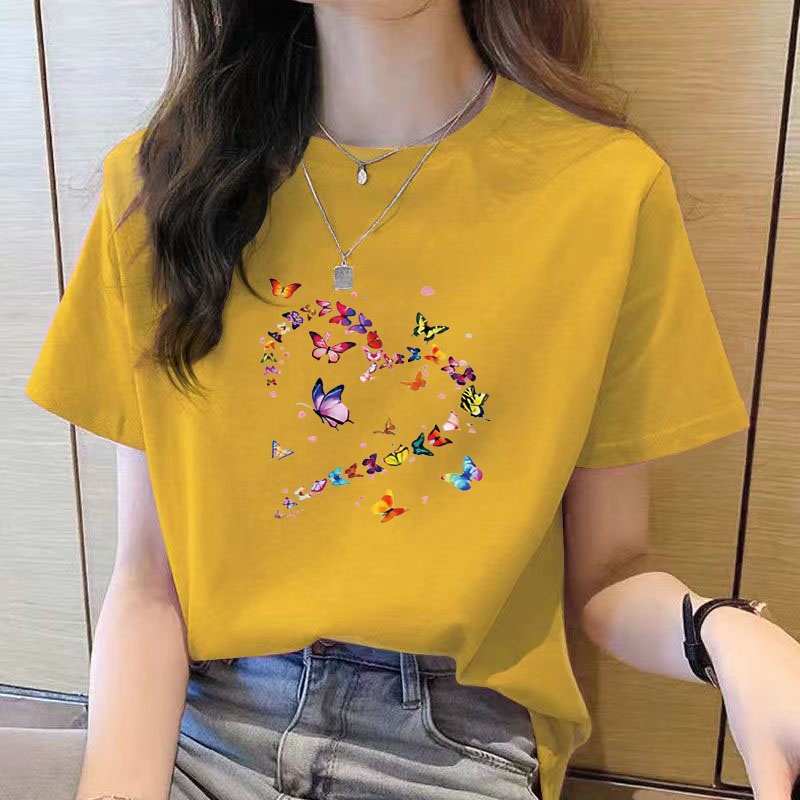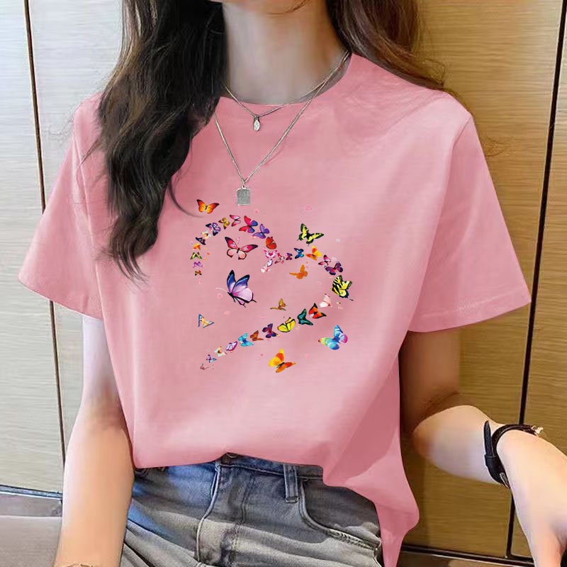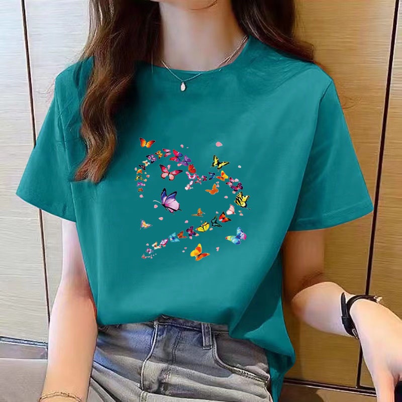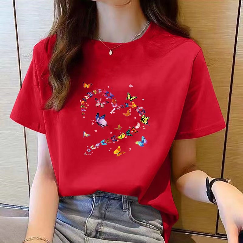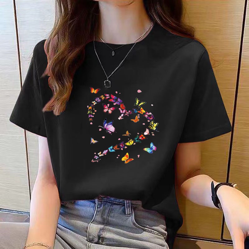 เสื้อยืดคอกลม แขนสั้น พิมพ์ลาย ทรงหลวม สไตล์เกาหลี แฟชั่นสําหรับผู้หญิง