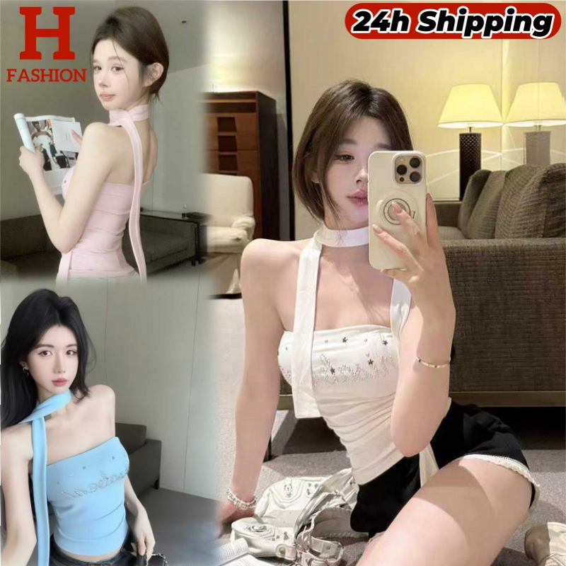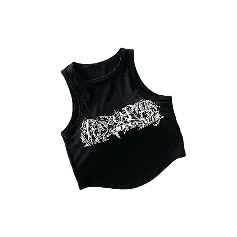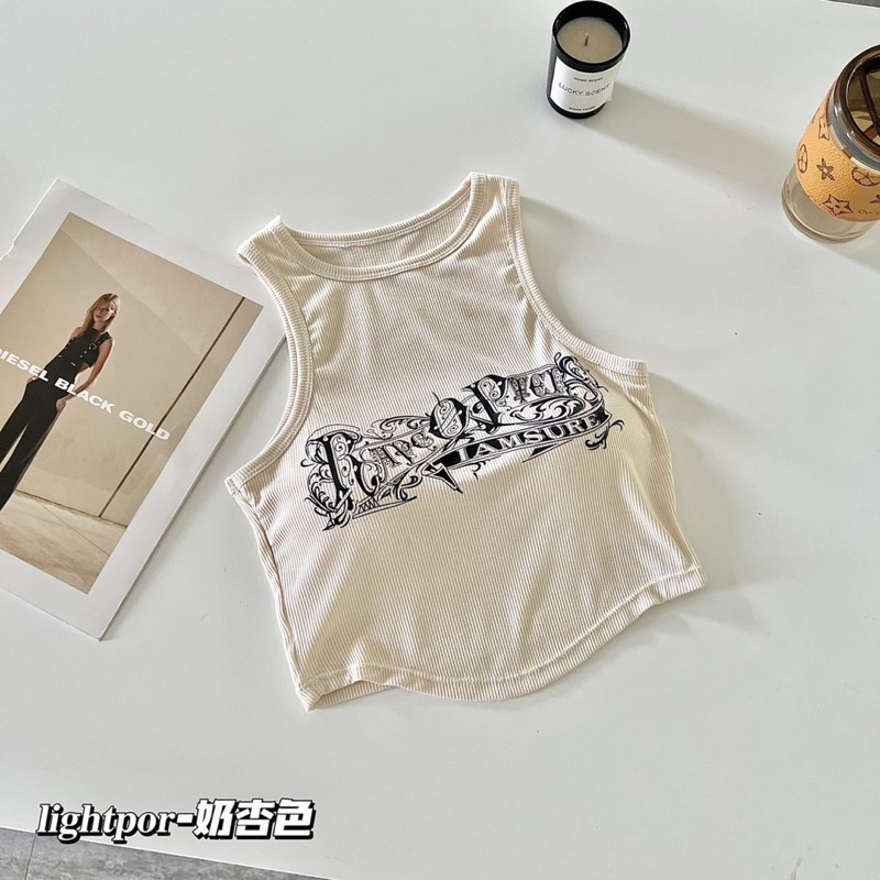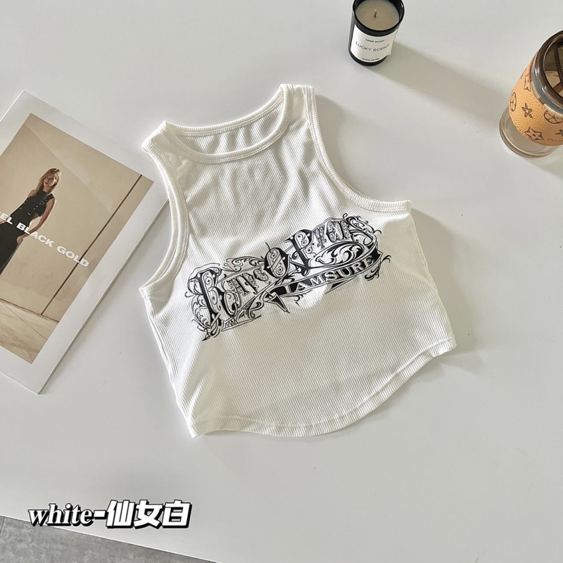 ไหม่ 2023?9902#เสื้อกล้ามไหมพรมมีฟองน้ำ ผ้ายืดใส่สบาย เข้ารูป ลายอังกฤษหน้าอก แมทง่าย