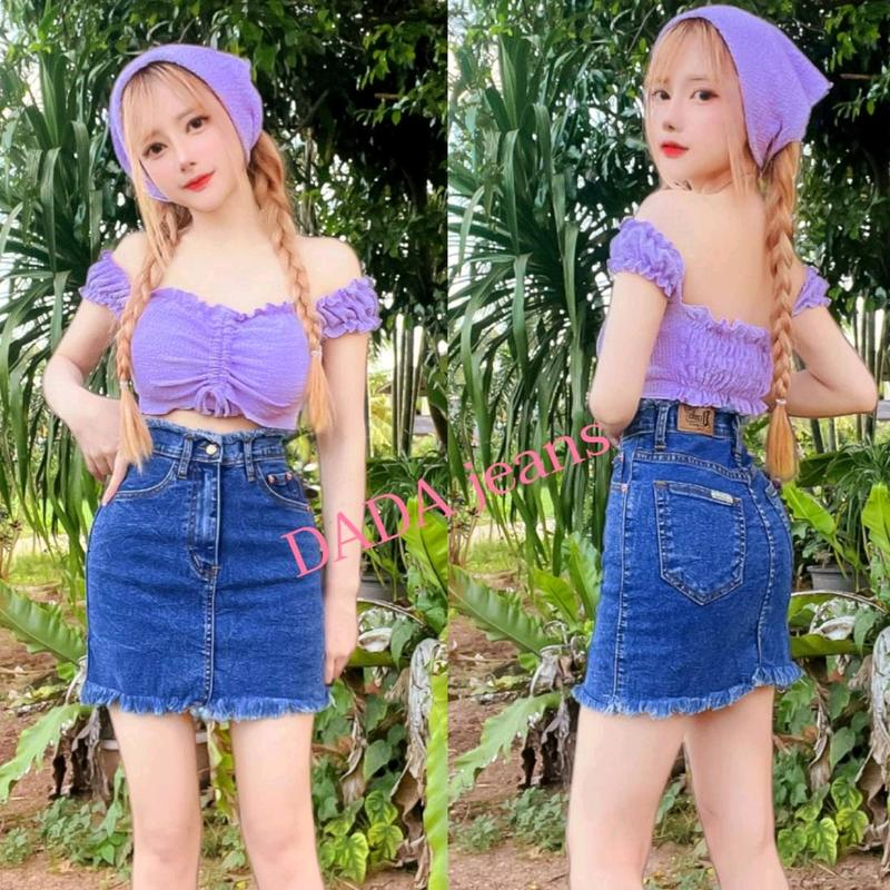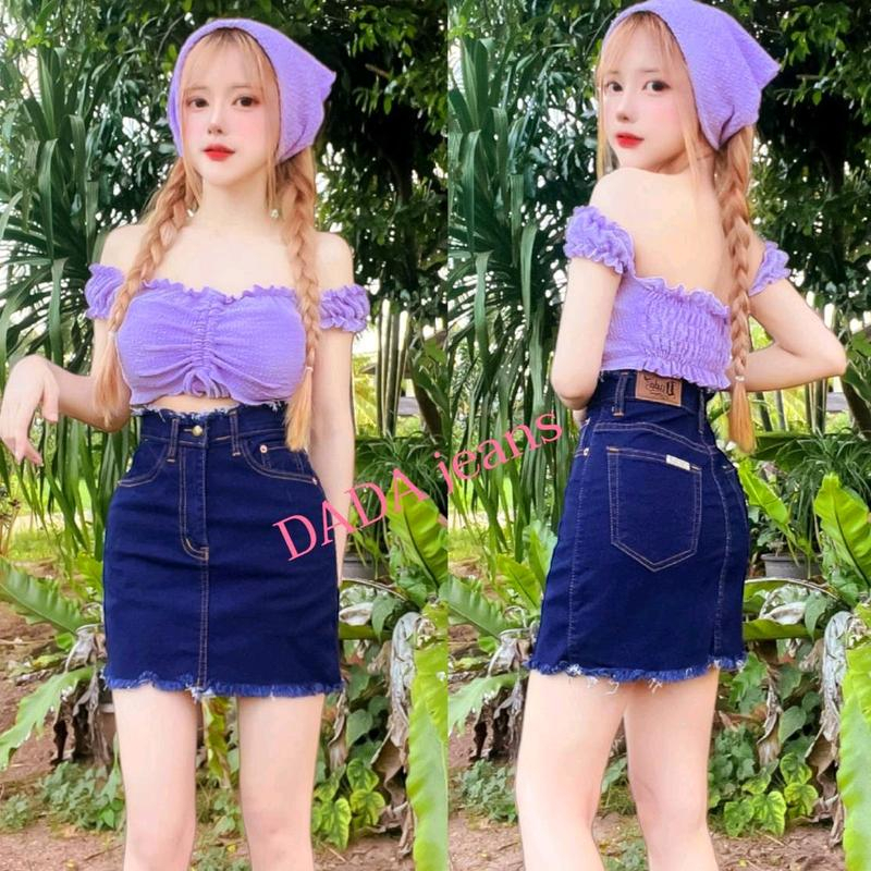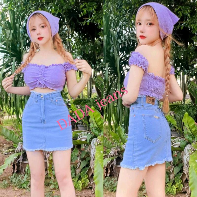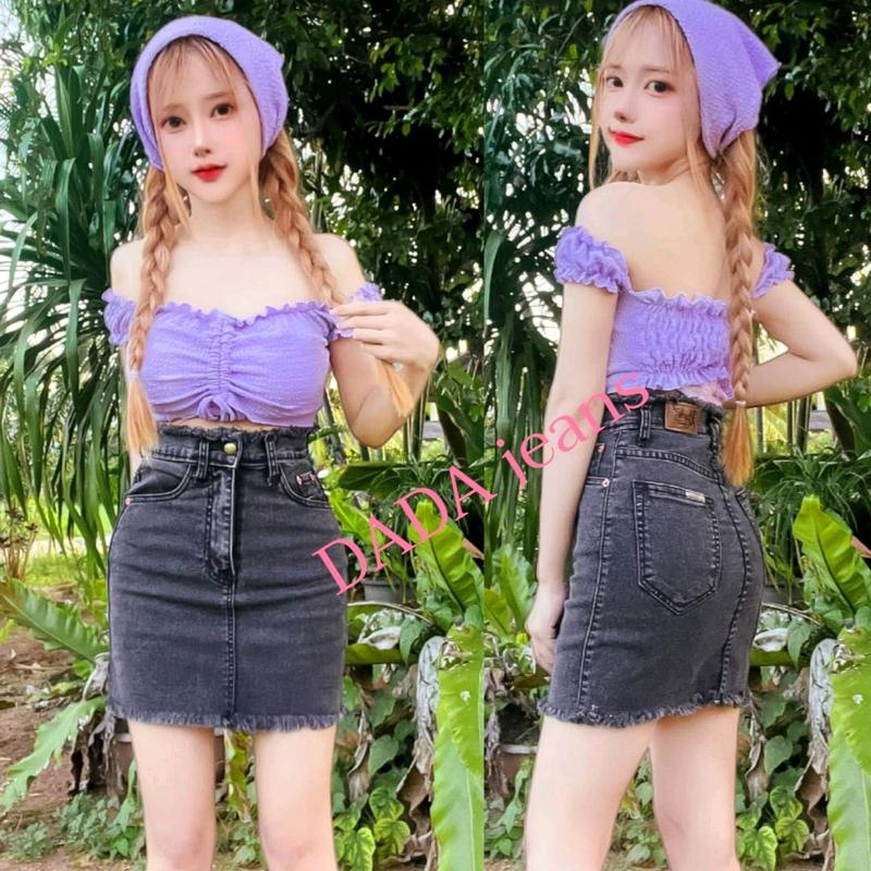 กระโปรงยีนส์สไตล์เกาหลี ดีเทลแต่งชายกระโปรง มี 7 สี 4 ไซส์ให้เลือก(ไม่มีซับใน)