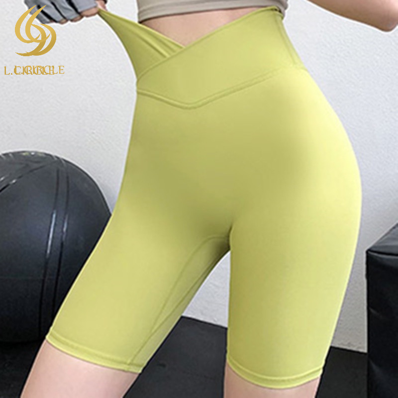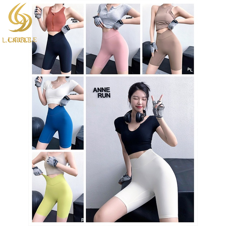 L.CIRCLEWomen High เอว Fitness Gym กางเกงขาสั้นสําหรับเล่นโยคะและขับรถออกกําลังกาย