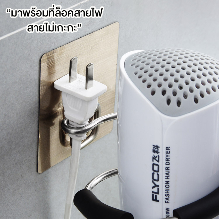 Systano (ส่งจากไทย) ที่แขวนไดร์เป่าผม ที่วางไดร์เป่าผม ใช้แผ่นกาวสำหรับติดตั้ง No.Y1504
