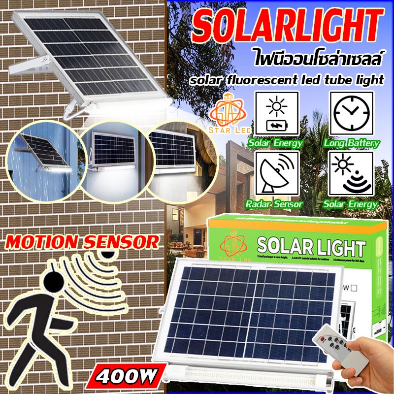 ไฟโซล่าเซลล์ ไฟนีออนโซล่าเซลล์ มีเซ็นเซอร์คนเดินผ่าน Solar LED 400W ใช้พลังงานแสงอาทิตย์