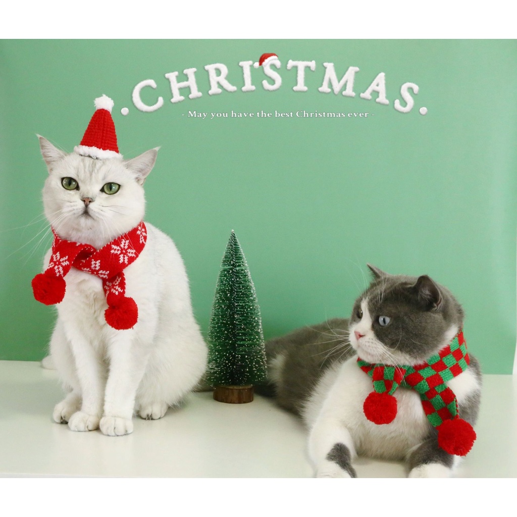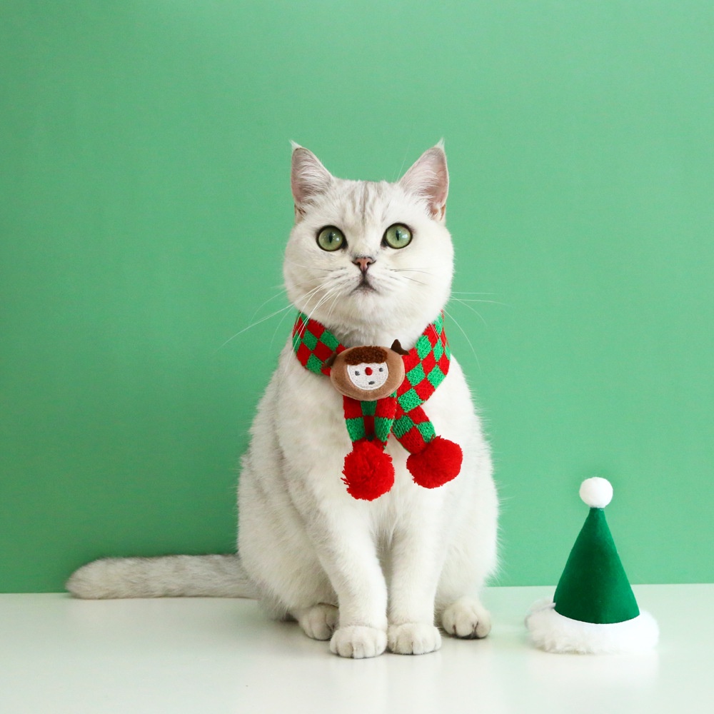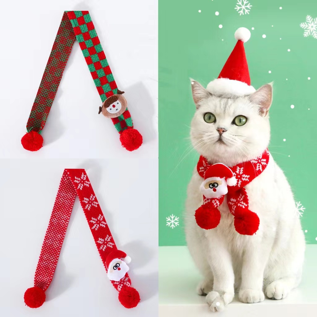 ผ้ากันเปื้อน ผ้าพันคอ ผ้าฝ้าย ลายการ์ตูนคริสต์มาส สีแดง ให้ความอบอุ่น แฟชั่นฤดูหนาว สําหรับสัตว์เลี้ยง สุนัข แมว