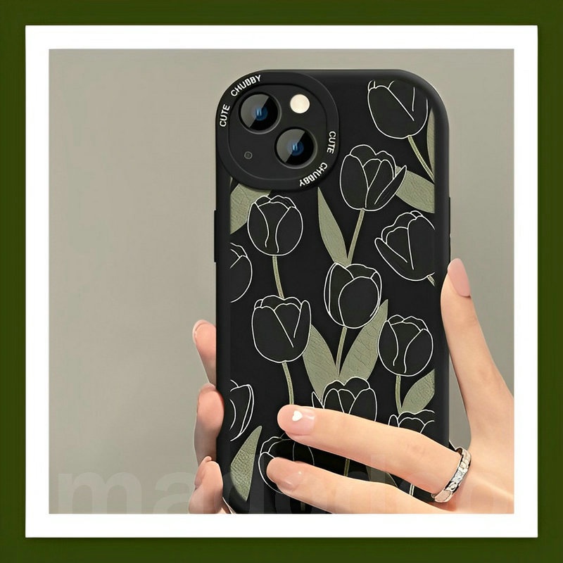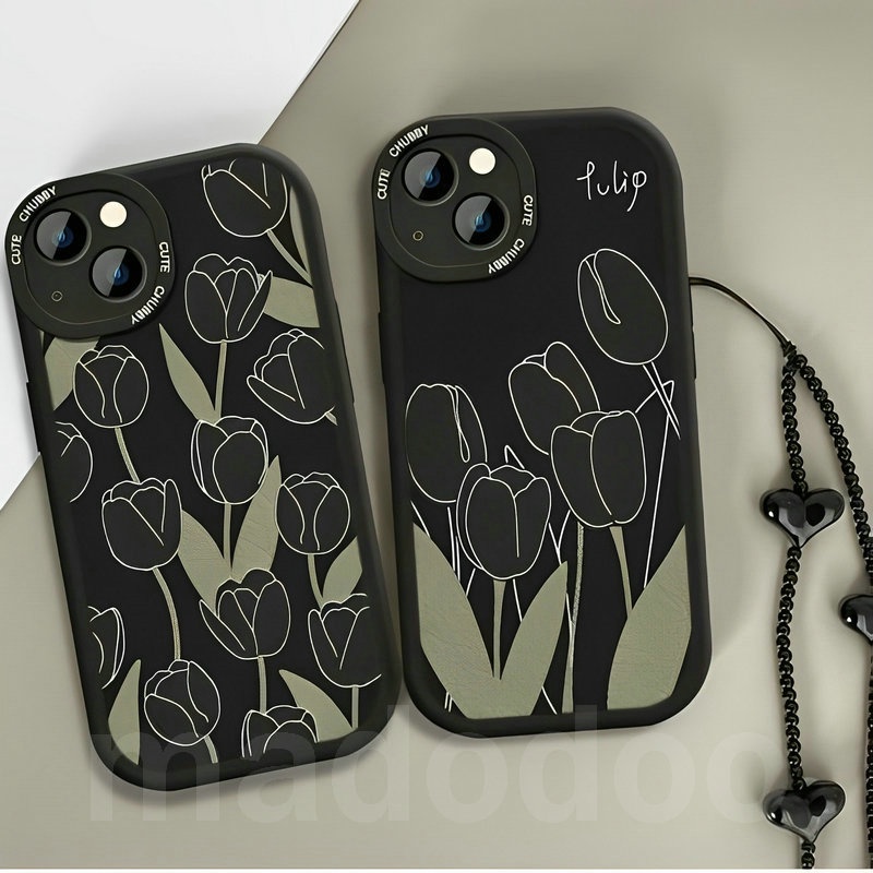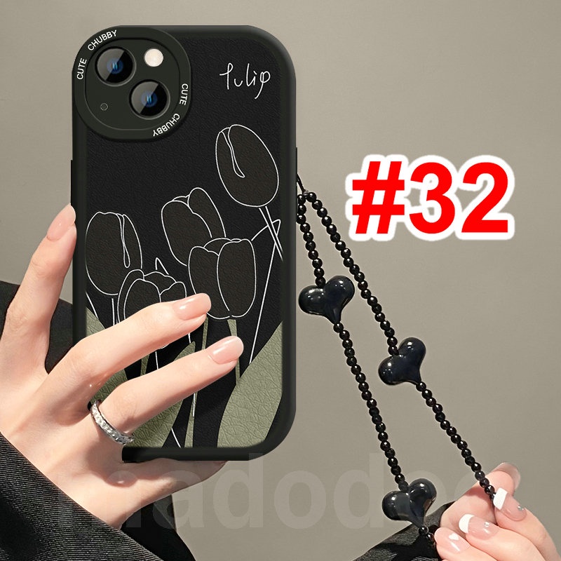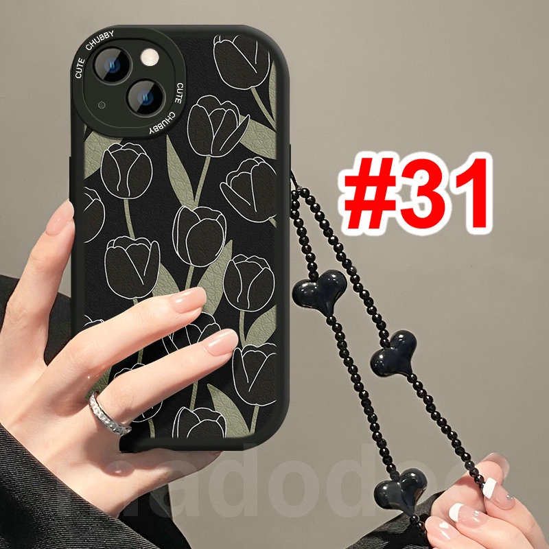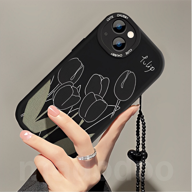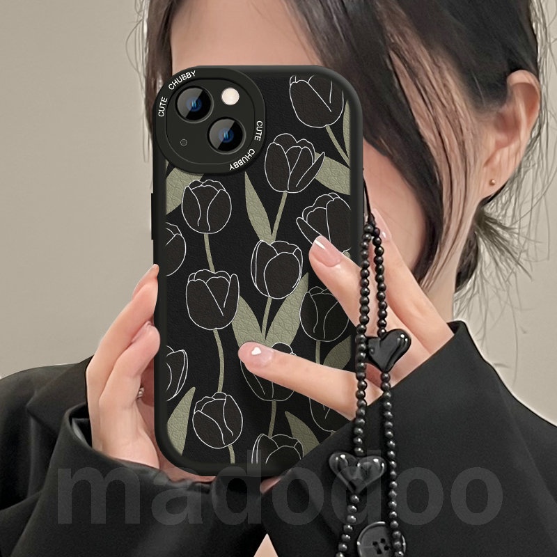 Tpu Casing Samsung Galaxy A15 A12 A13 A23 A73 A53 A33 A52 A52S A50 A50S A30S A11 A31 A70 A20 A30 A10S A22 LTE M11 M12 M22 M23 M32 M31 A32 A03S A02S A21S A51 A72 A71 4G 5G with Love Lanyard Black Tulip Flowers Airbag Shockproof Soft Phone Case XPN 31