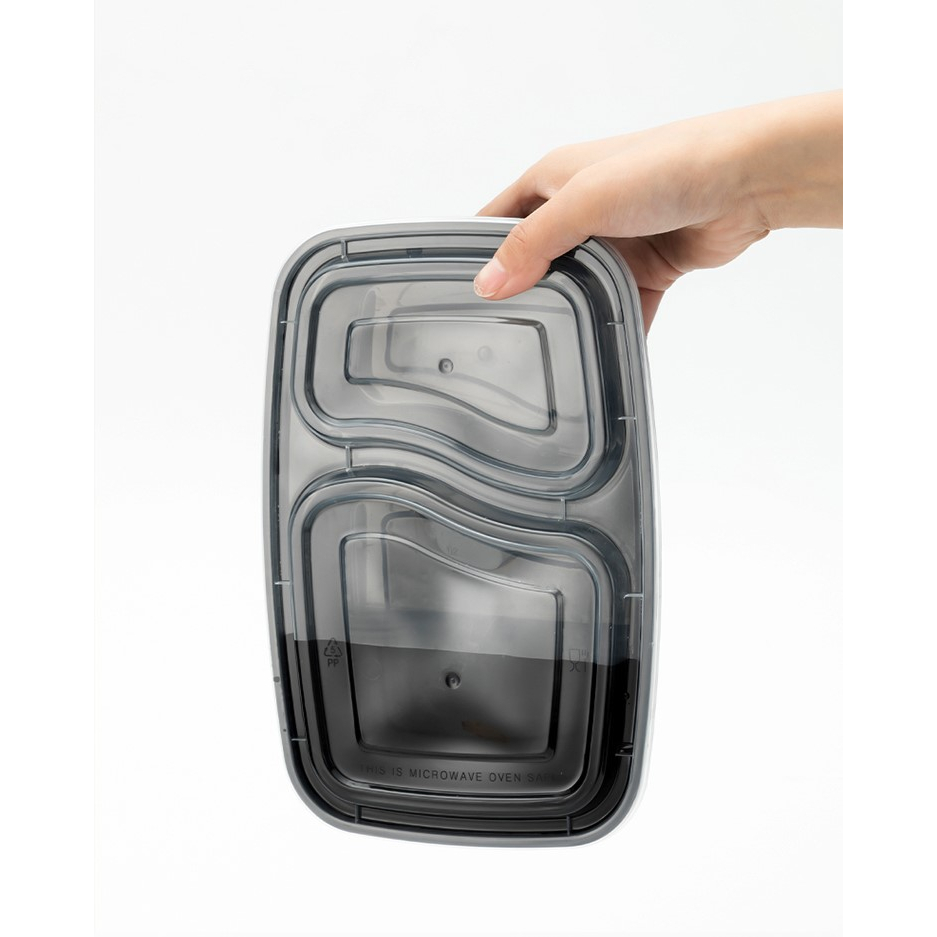 MBF2G750ml (ลัง 150 ใบ) กล่องอาหารพลาสติกเดลิเวอรี่ 2ช่อง ขนาด 750ml พร้อมฝา ใช้แล้วทิ้ง