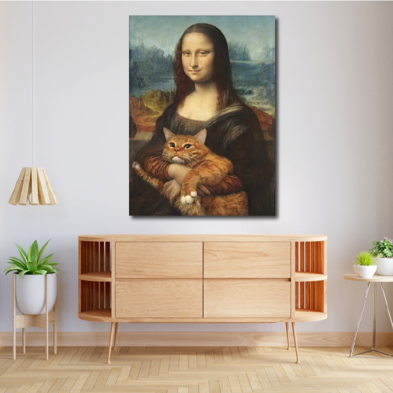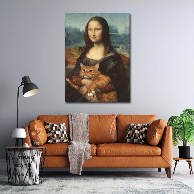 MonaCat-ภาพแขวนผนัง ภาพพิมพ์แคนวาส พร้อมกรอบลอย [พร้อมส่ง]