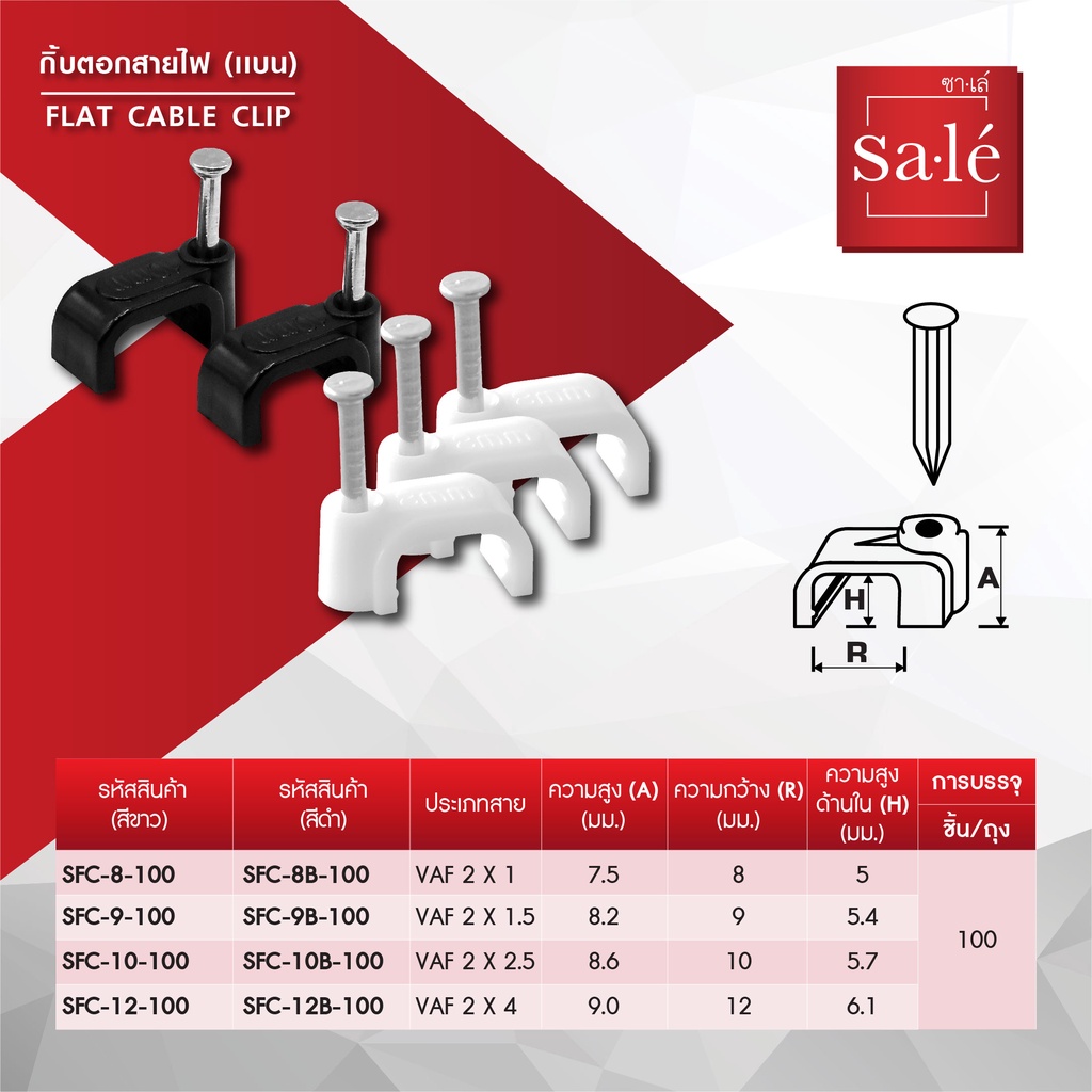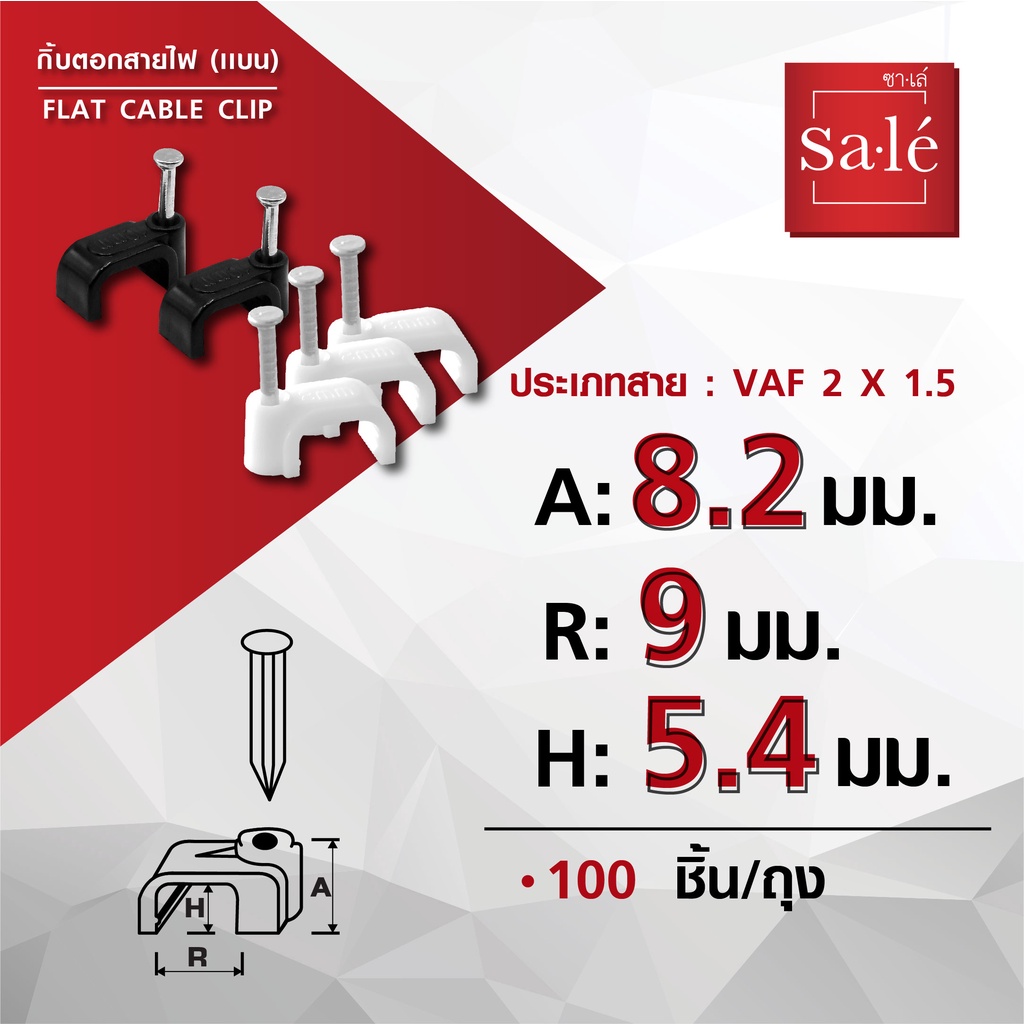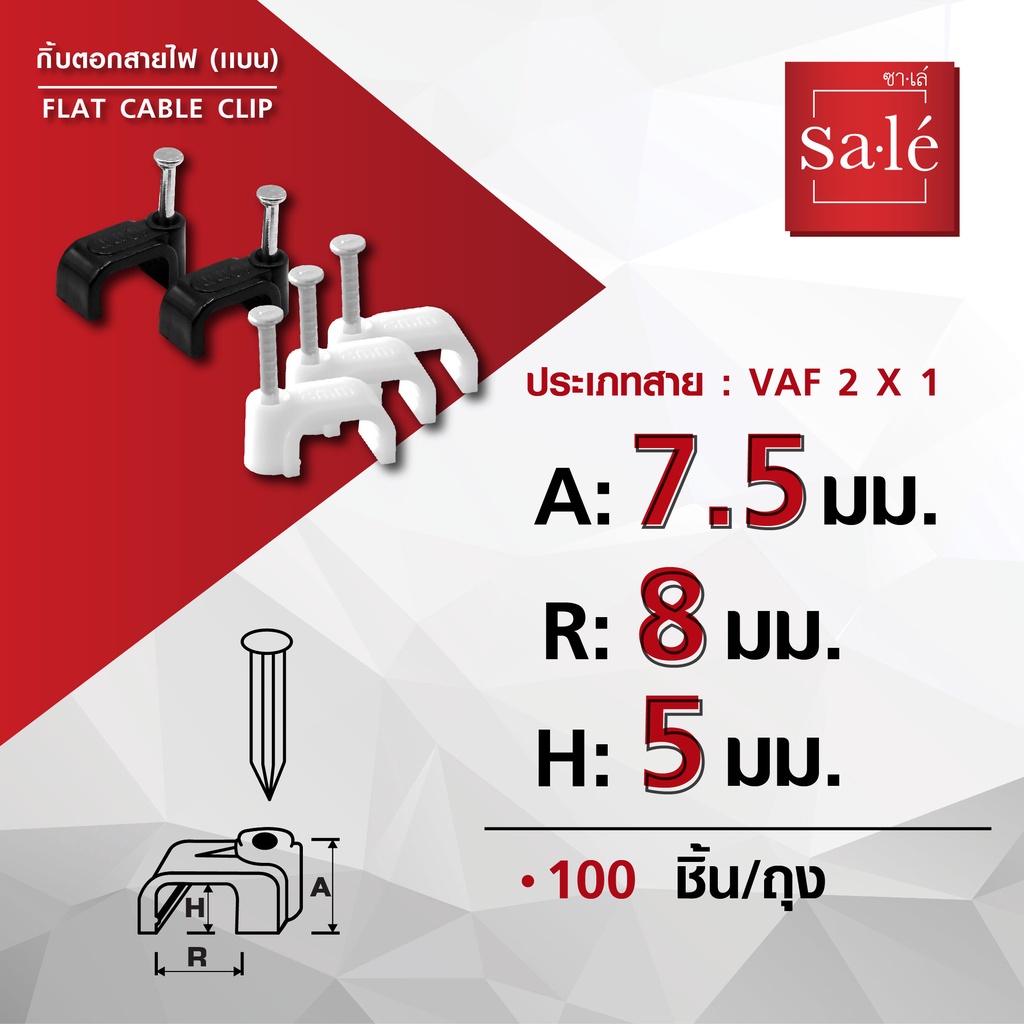 กิ๊บตอกสาย กิ๊บตอกสายไฟ ซาเล่ แบบตัวแบน (100ชิ้น)